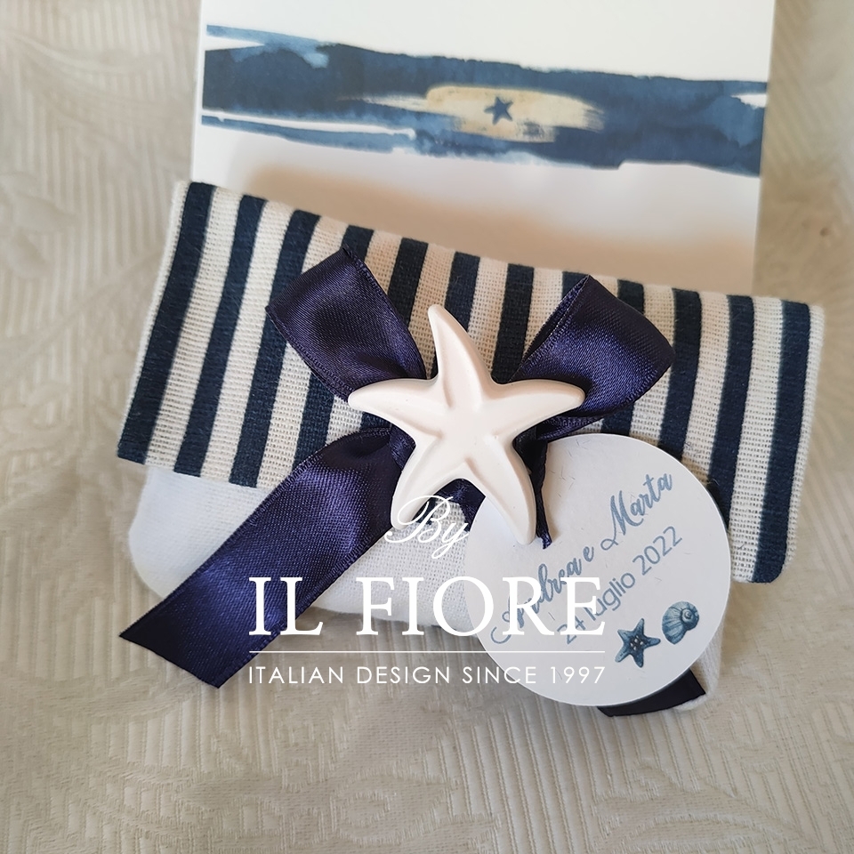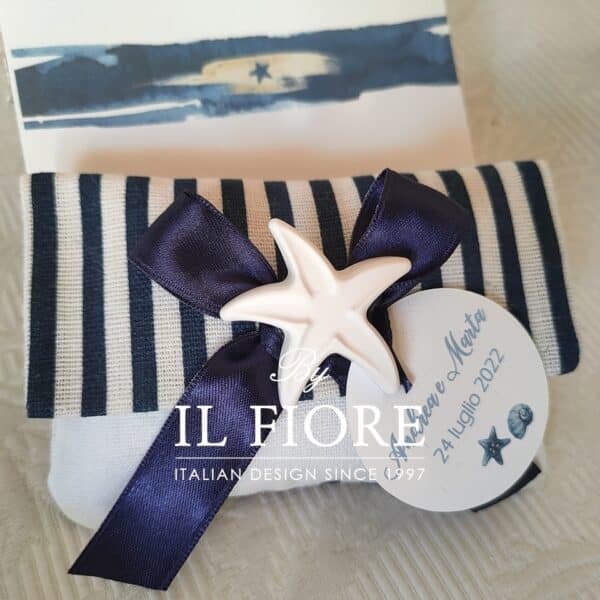 Bomboniere Comunione sacchetto a righe blu stella marina