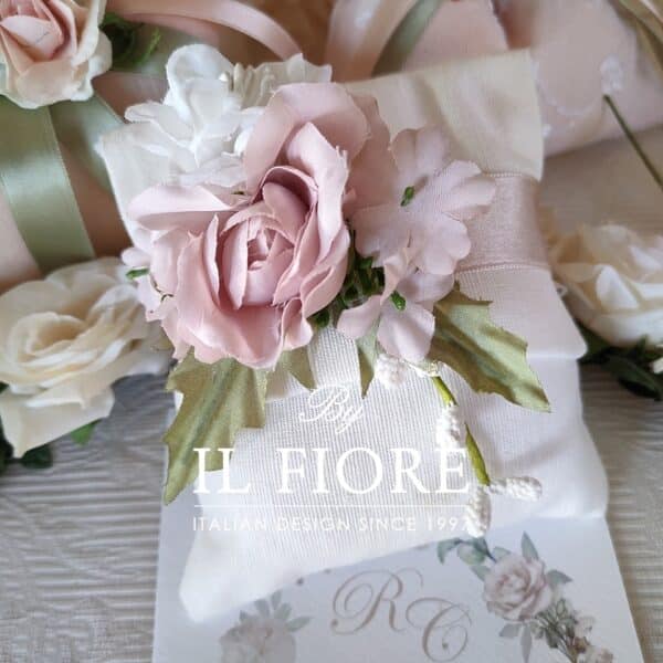 Bomboniera sacchetto busta portaconfetti in cotone con fiori.