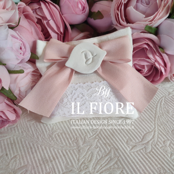 Bomboniere Comunione e sacchetto con pizzo personalizzato con iniziale.