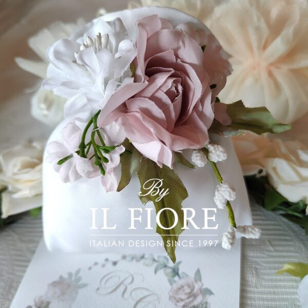 Bomboniera sacchetto portaconfetti in raso con fiori.