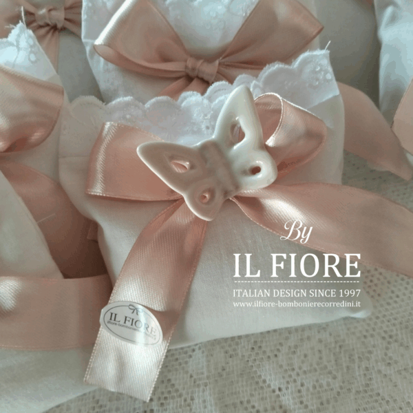Bomboniere Comunione Sacchetto Sangallo con farfalla in ceramica