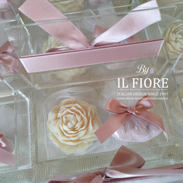 Bomboniere Comunione scatola portagioie candela peonia