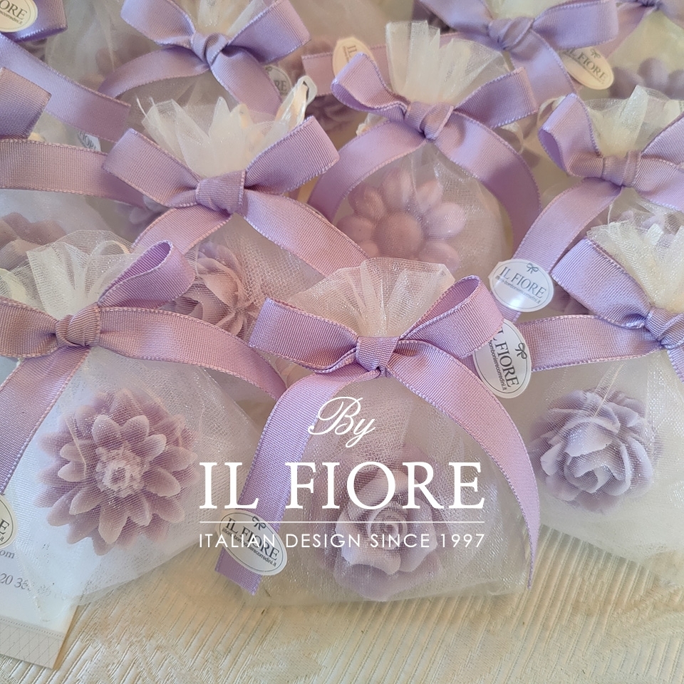 Bomboniere Cresime e Comunione candele fiori con sacchetto in organza