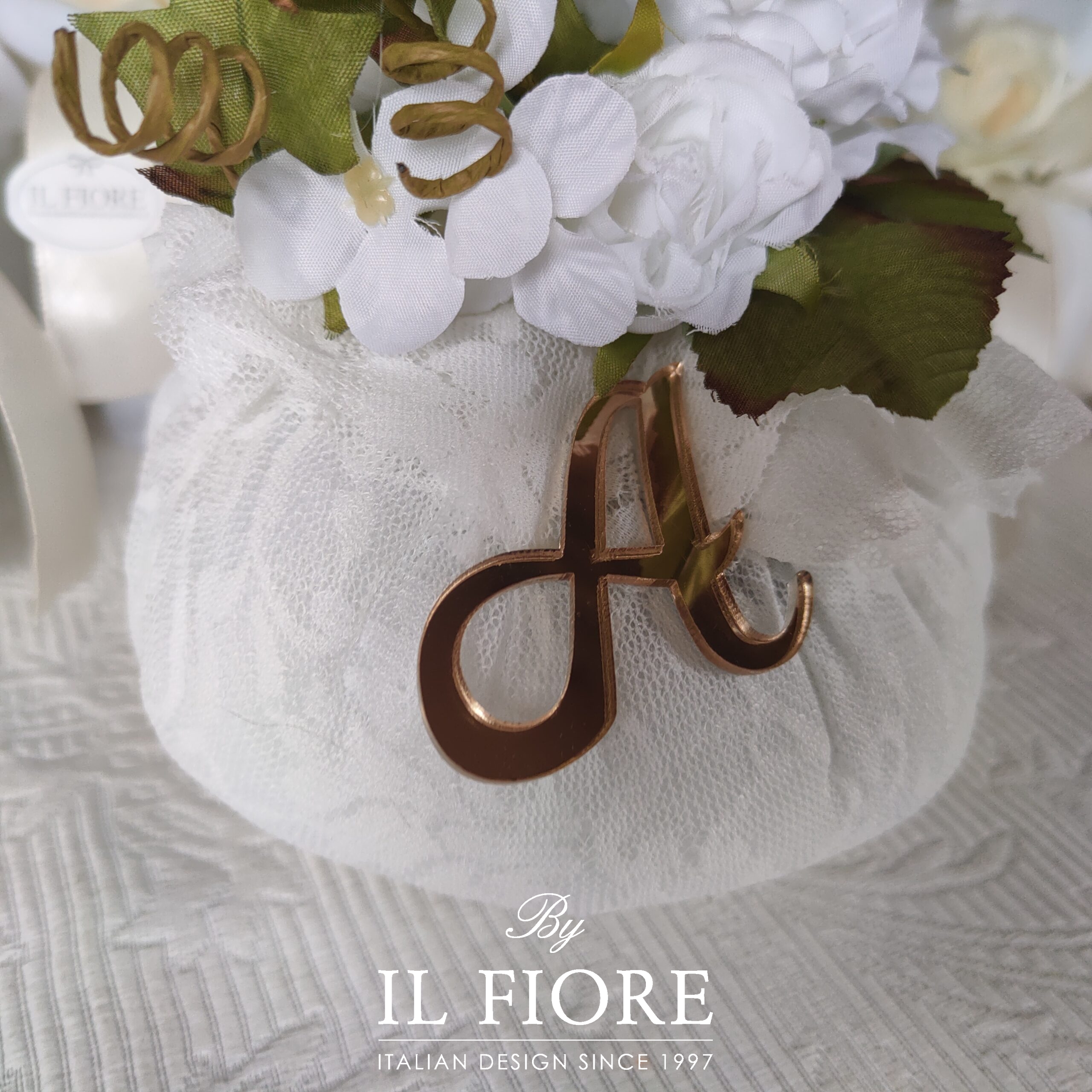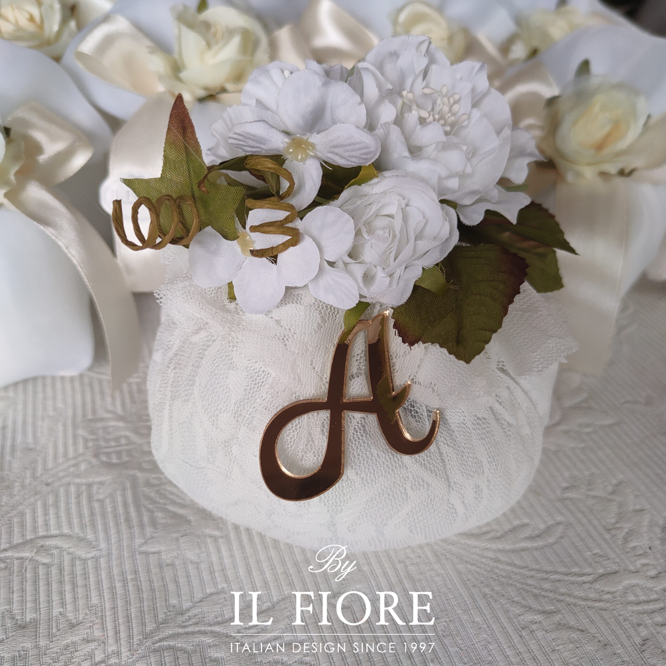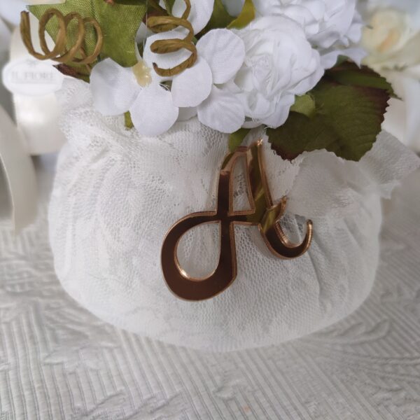 Bomboniere elegante Comunione e Cresima in pizzo con lettera dorata