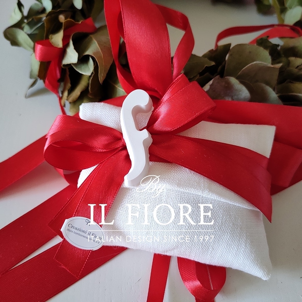 Bomboniera Laurea e Cresima, la bomboniera bustina  è decorata con gessetto profumato iniziale nome.