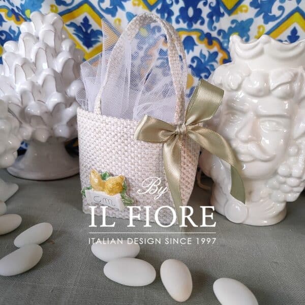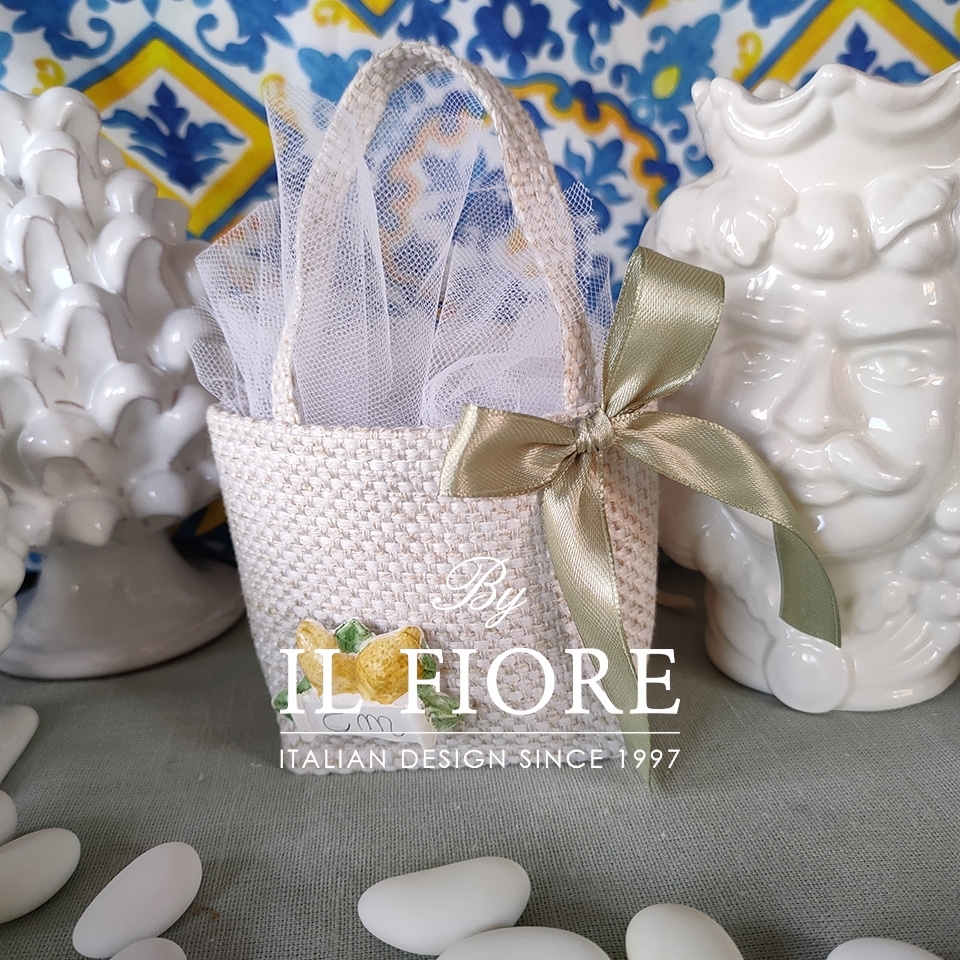 Bomboniere matrimonio borsetta con targhetta limoni e candela