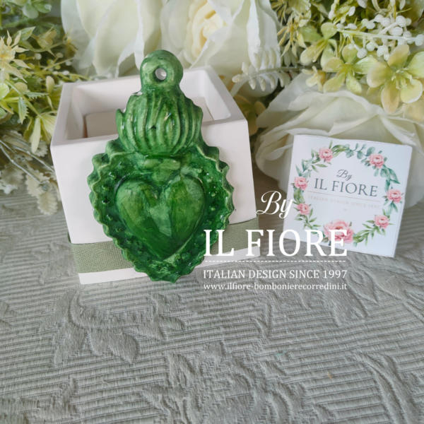 Bomboniera matrimonio. Bomboniera vasetto con candela decorato con CUORE SACRO. La bomboniera è confezionata con scatola e fiocco.