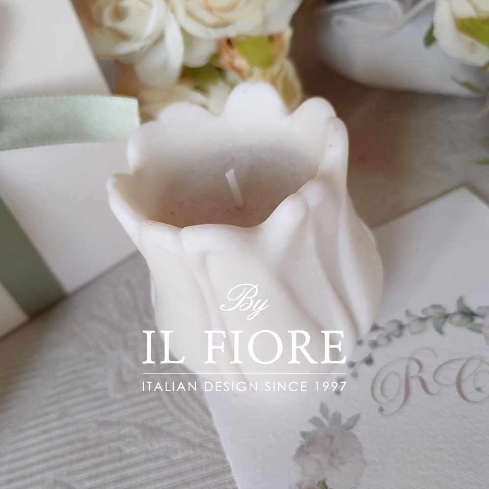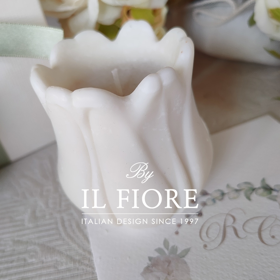 Bomboniera candela tulipano rosa elegante e raffinata per matrimonio e anniversario matrimonio.
