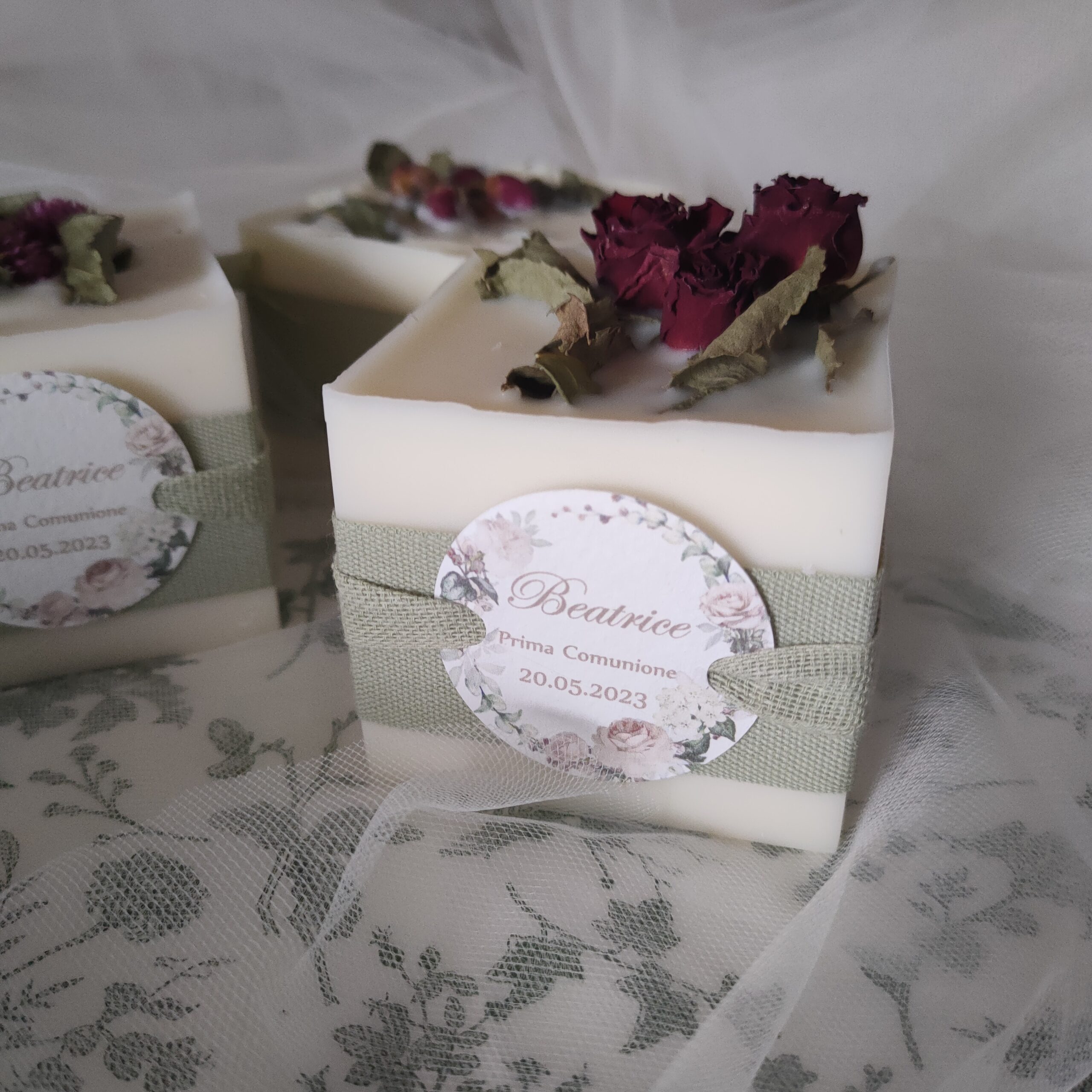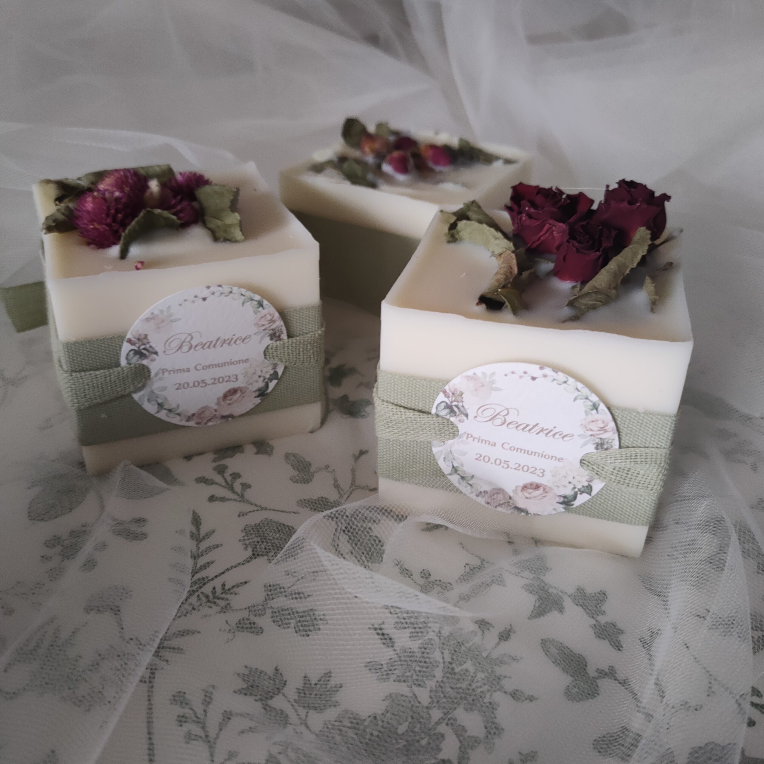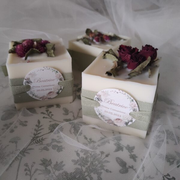 Bomboniere Matrimonio candele con fiori e tag personalizzata