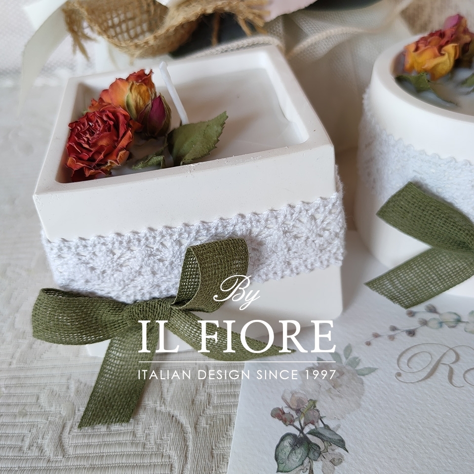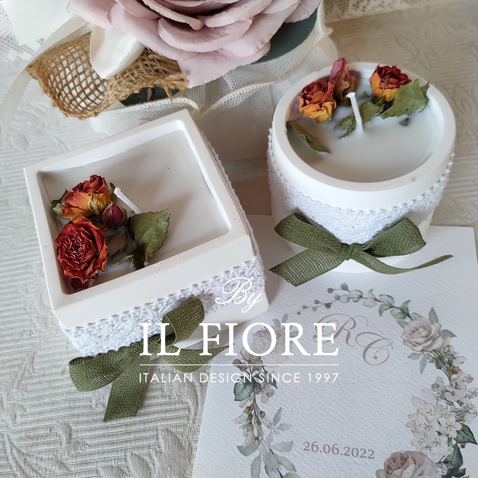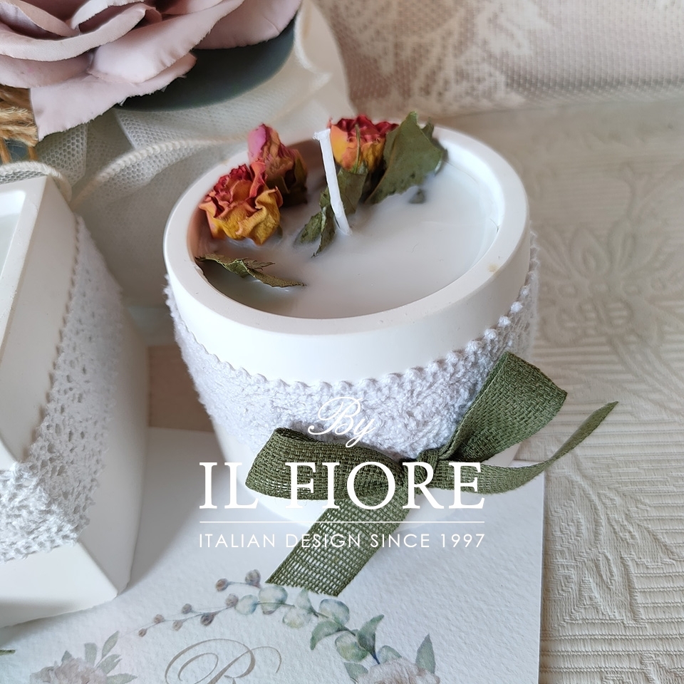 Bomboniere Matrimonio candele con fiori e vasetto in gesso profumato