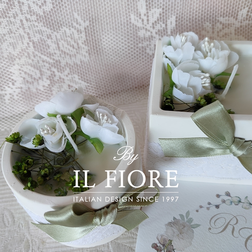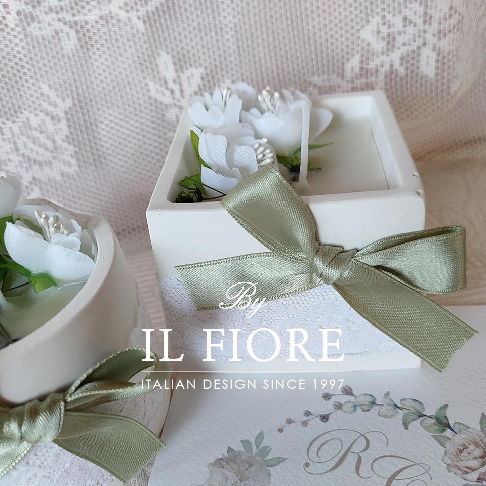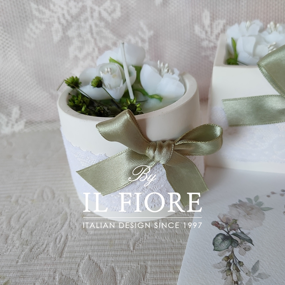 Bomboniere Matrimonio candele con fiori e vasetto in gesso profumato