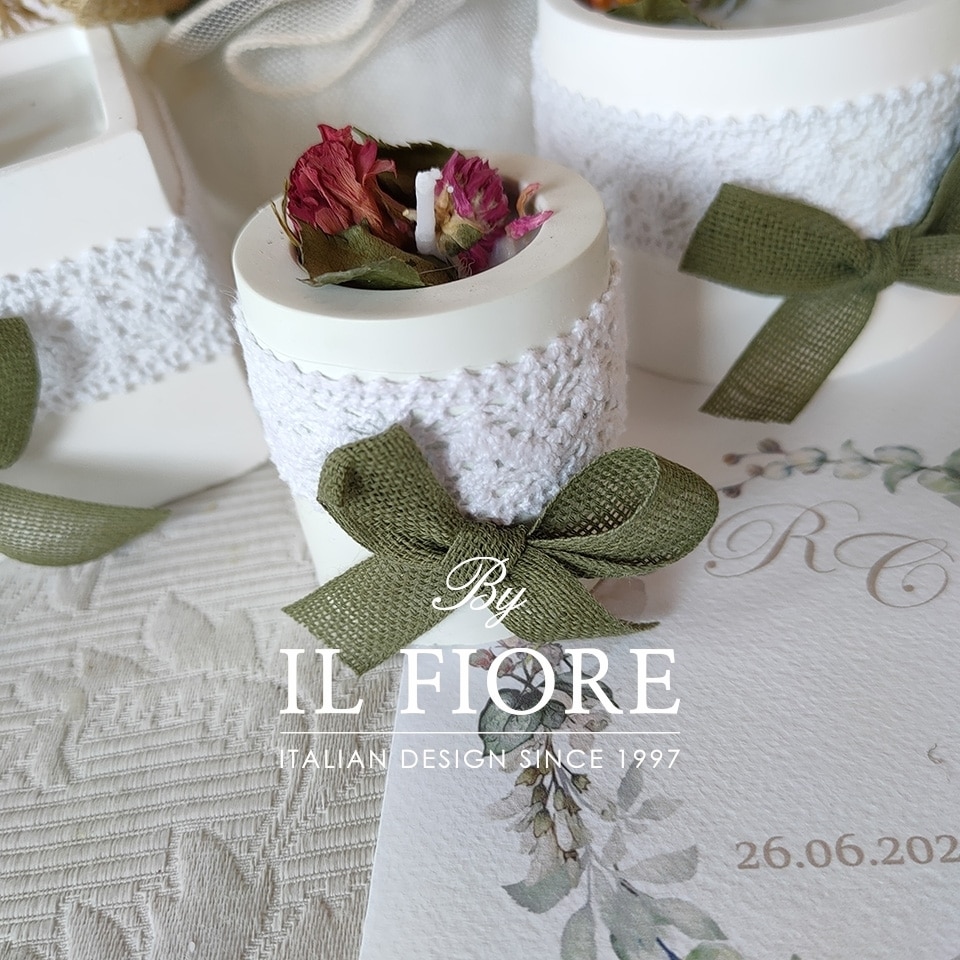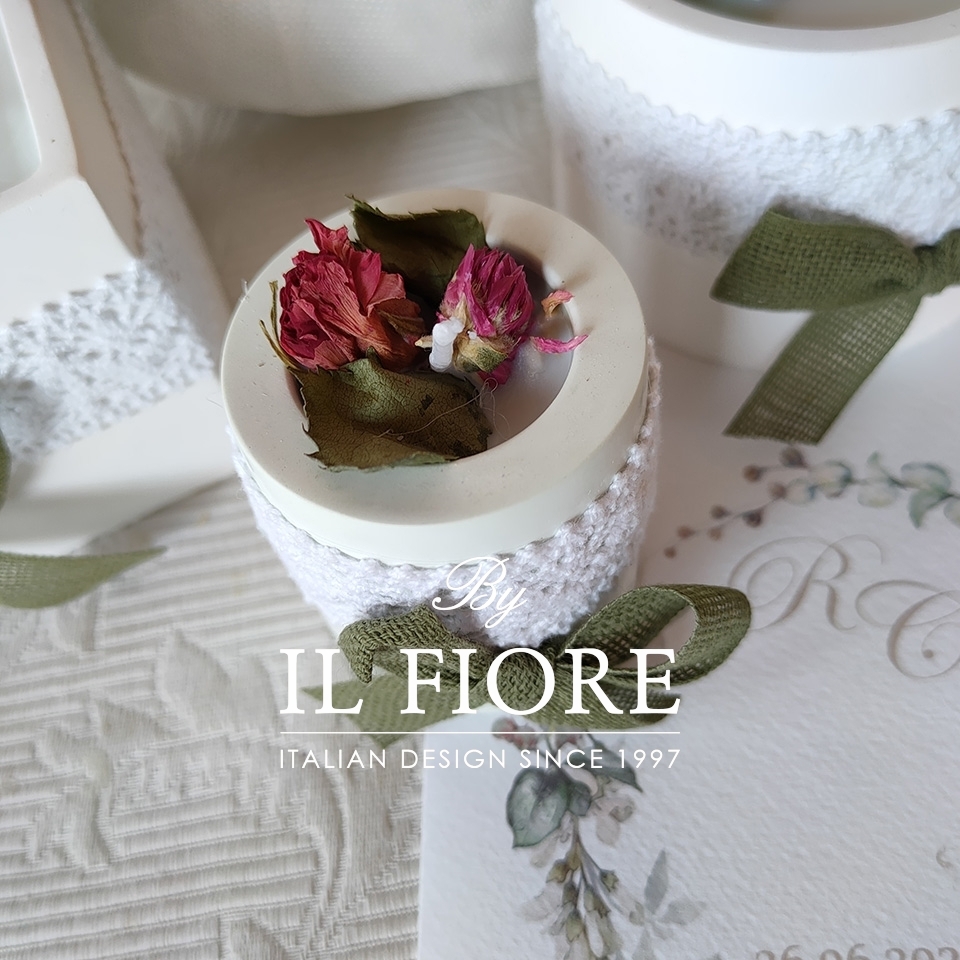 Bomboniere Matrimonio candele con fiori e vasetto in gesso profumato