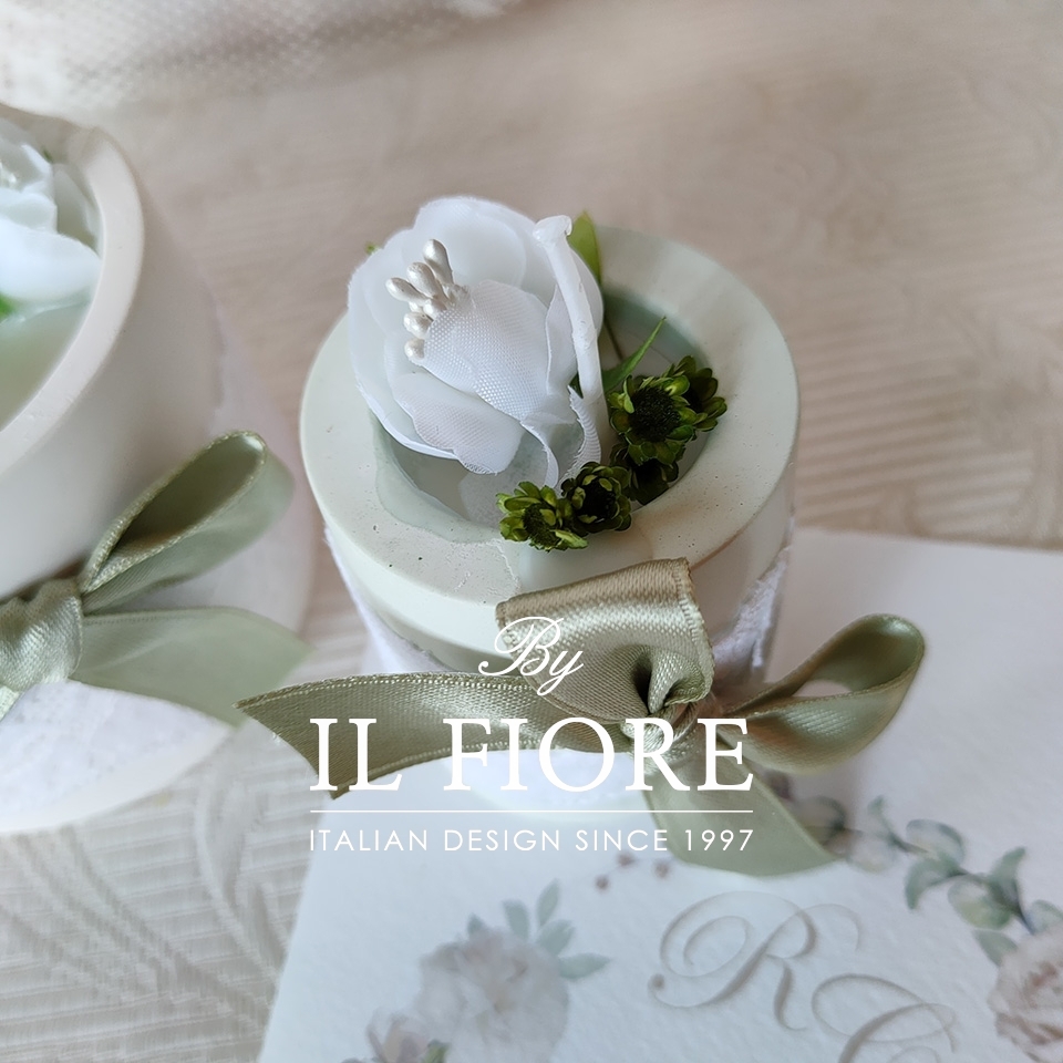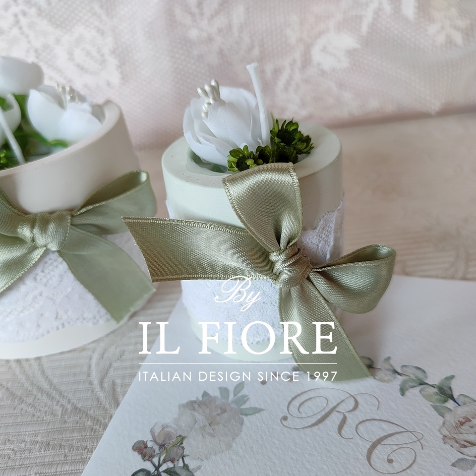 Bomboniere Matrimonio candele con fiori e vasetto in gesso profumato