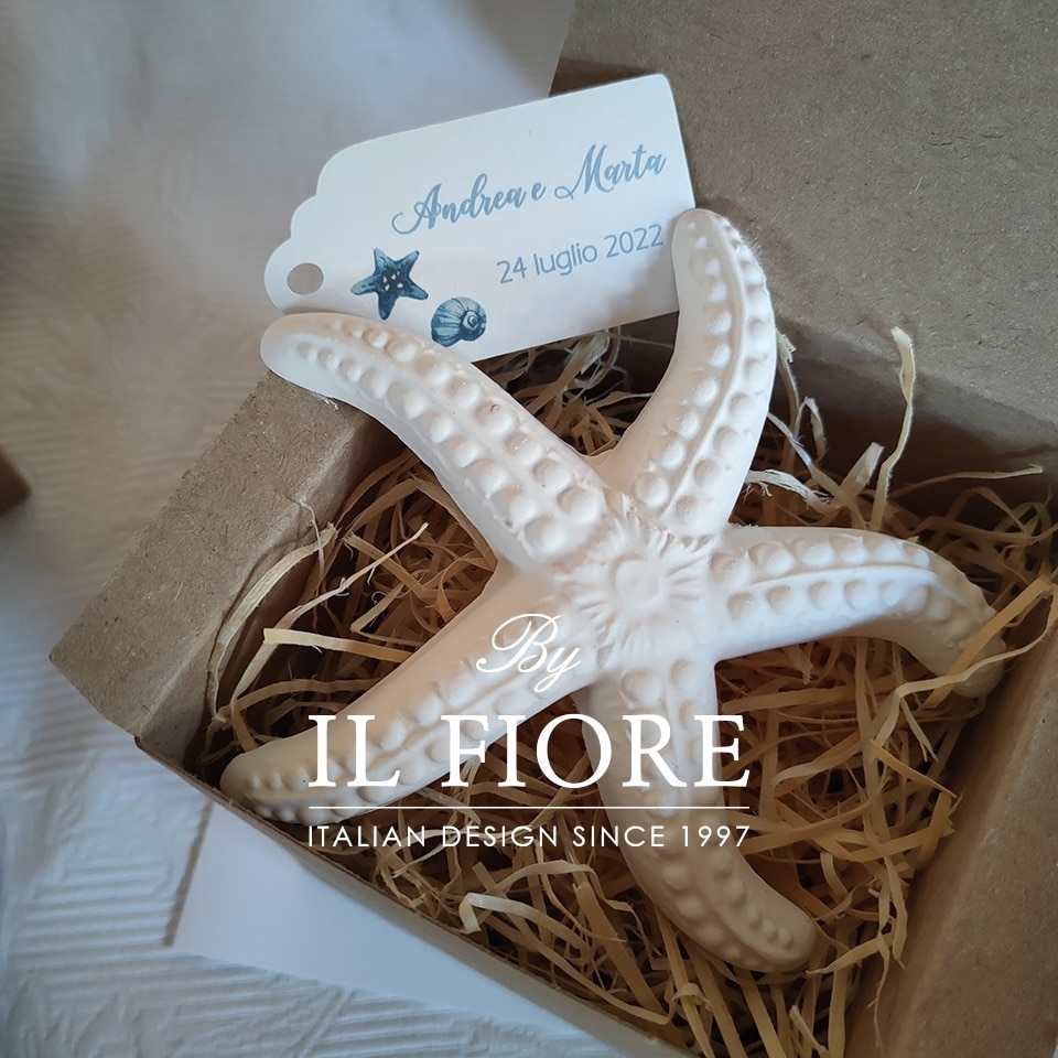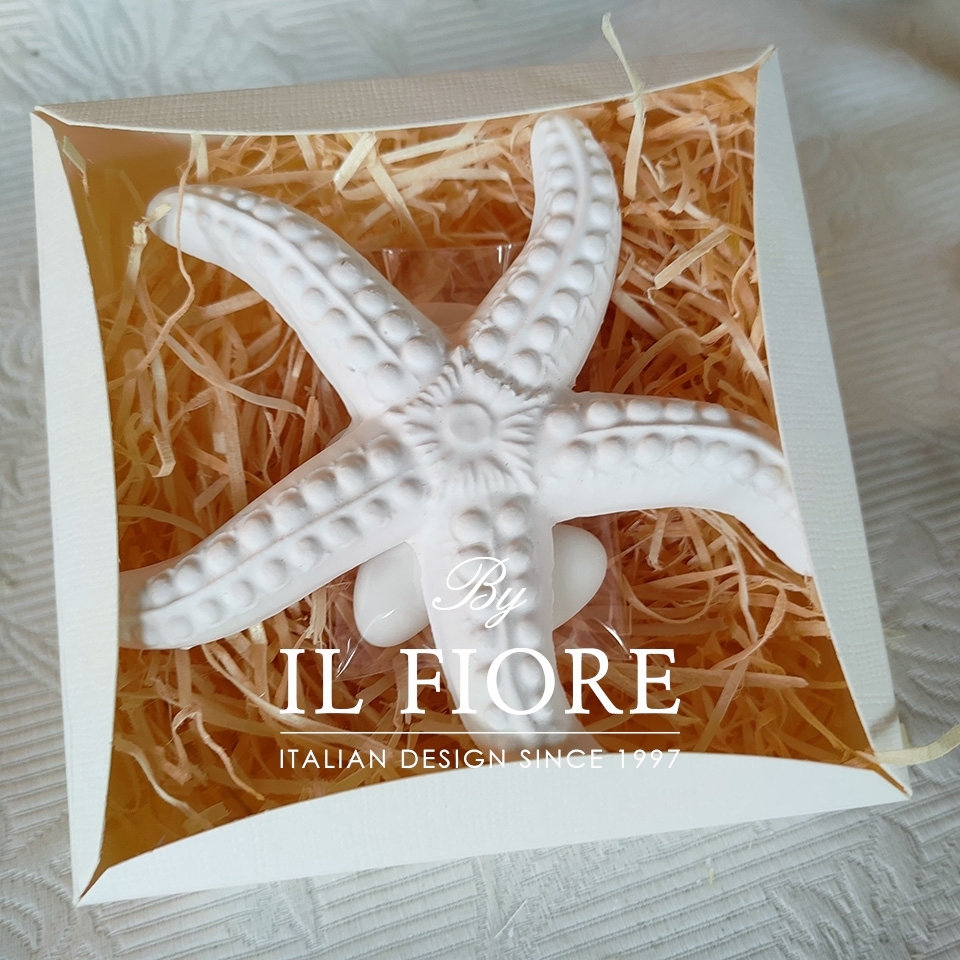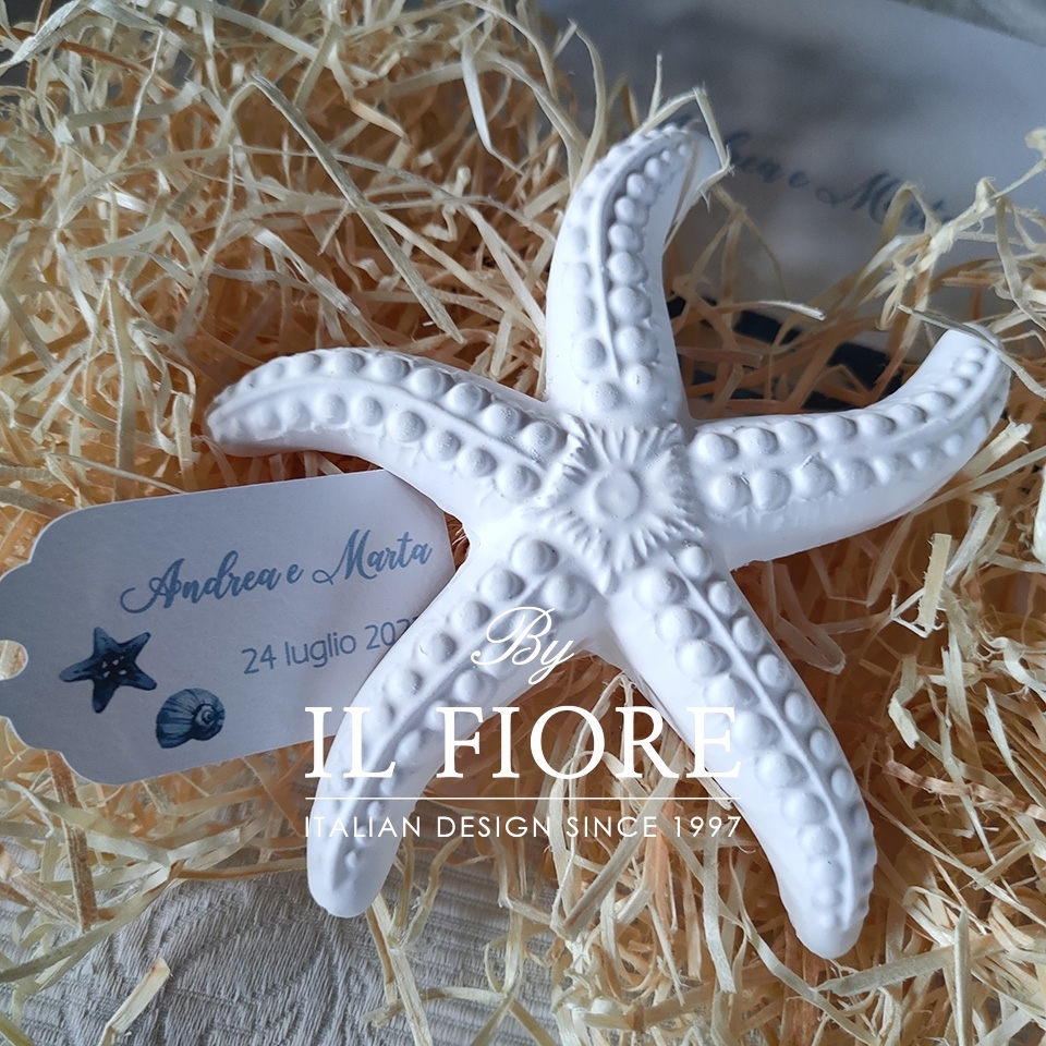 Bomboniera matrimonio, Comunione, Cresima e anniversario matrimonio. Bomboniera originale gesso stella marina profumatissimo realizzata a mano, confezionate con scatola, confetti e nastrino. N.B. La tag non è più disponibile.