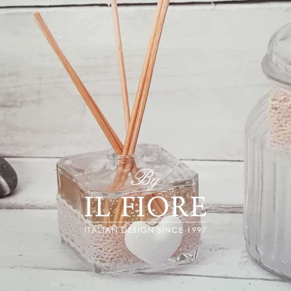 Bomboniera profumatore per matrimonio, cresima, comunione e anniversario matrimonio, vasetto in vetro con cuore in gesso e bastoncini.