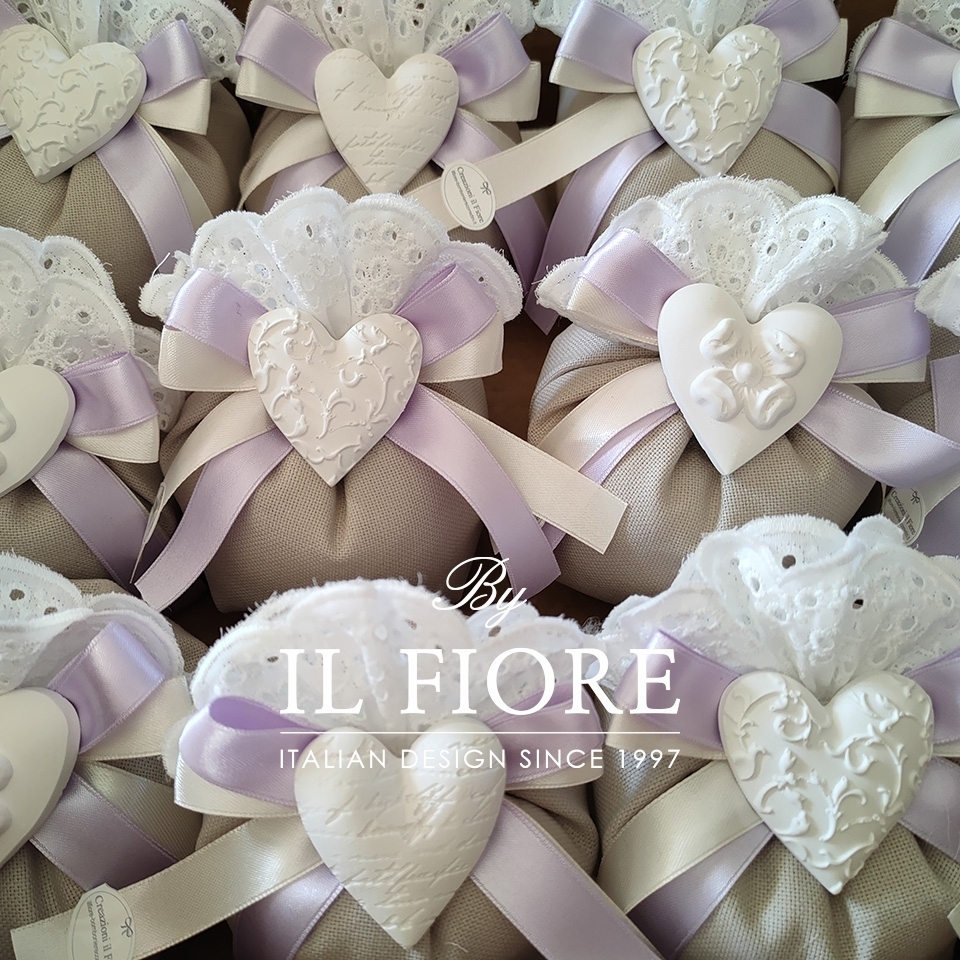 Bomboniere Matrimonio Sacchetto con Cuore e pizzo San Gallo