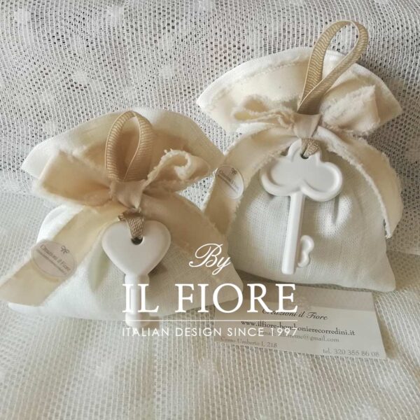 Bomboniere Matrimonio Sacchetto Country con Chiavi in Gesso