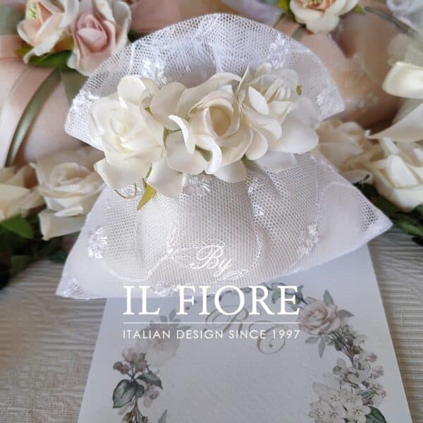 Bomboniere Matrimonio sacchetto in pizzo con fiori