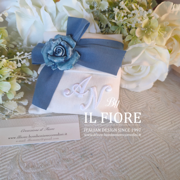 Bomboniere matrimonio sacchetto personalizzato con rosa