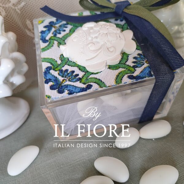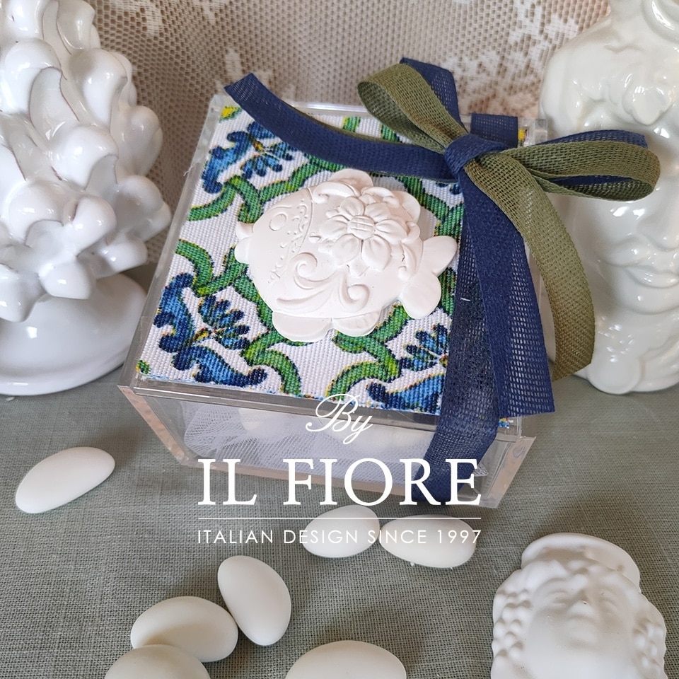 Bomboniere matrimonio scatola con pesciolini decoro siciliano