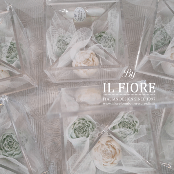 Bomboniere matrimonio scatola portagioie con candele peonie.
