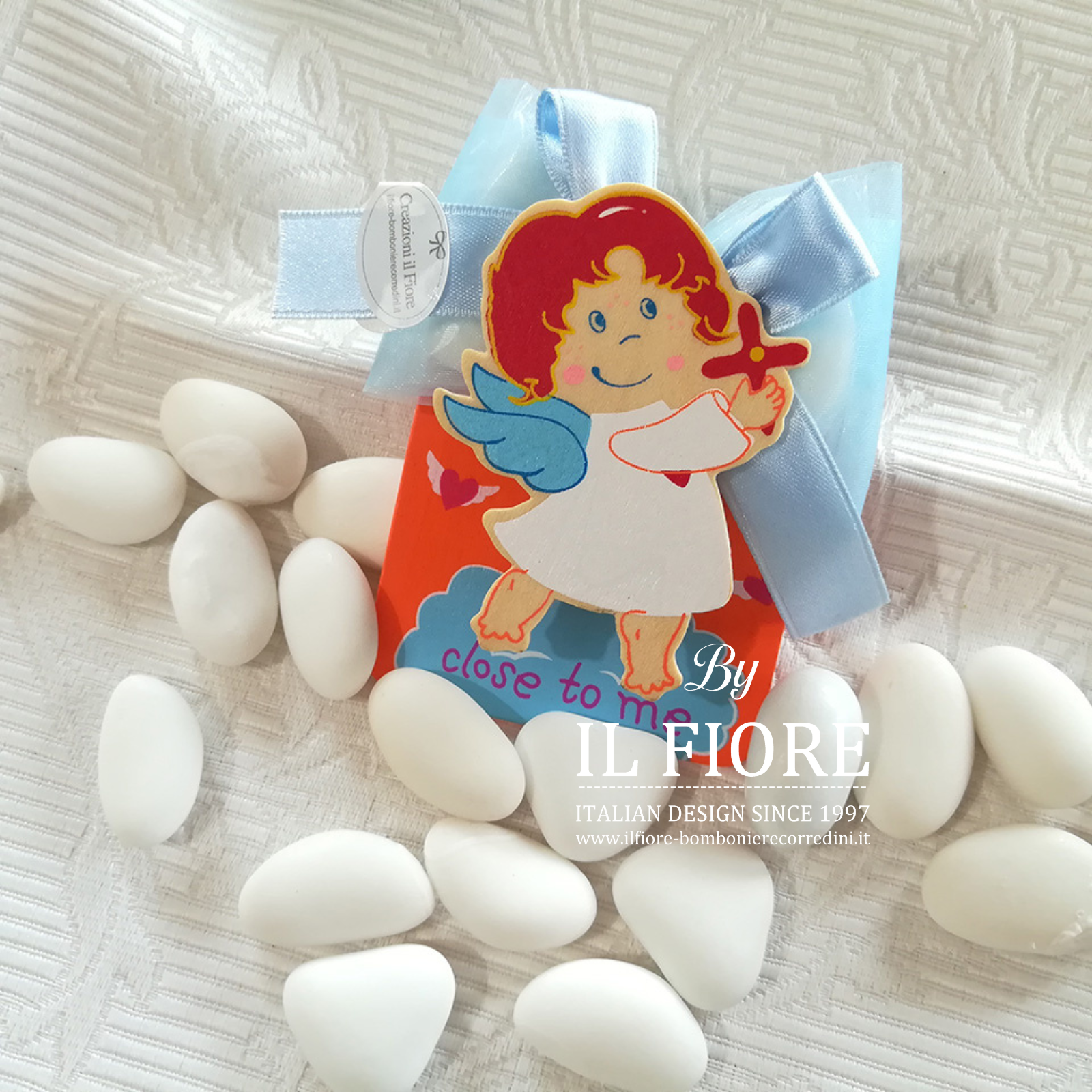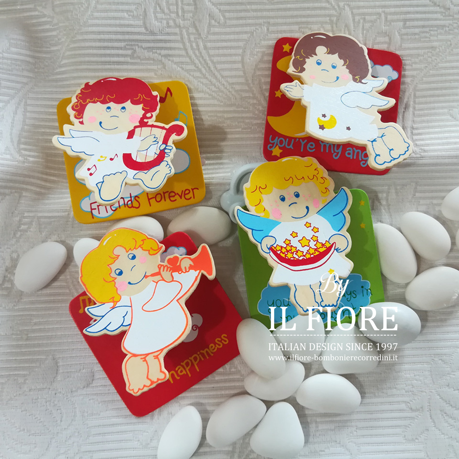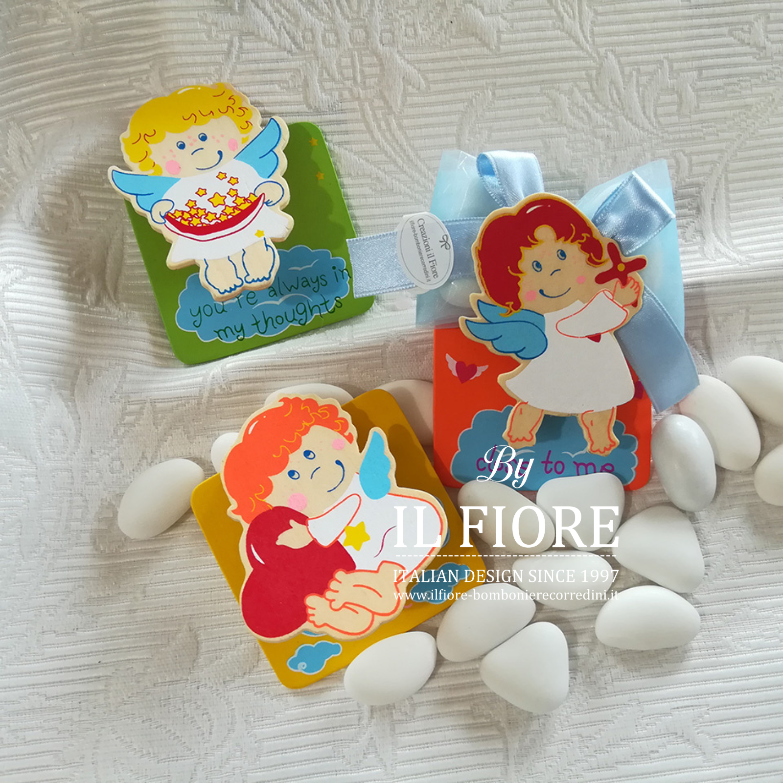 Bomboniere nascita bimbo/a Calamita con angioletti