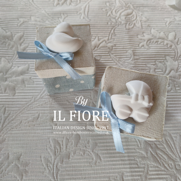 Bomboniere nascita bimbo scatolina a pois con gessetti profumati.