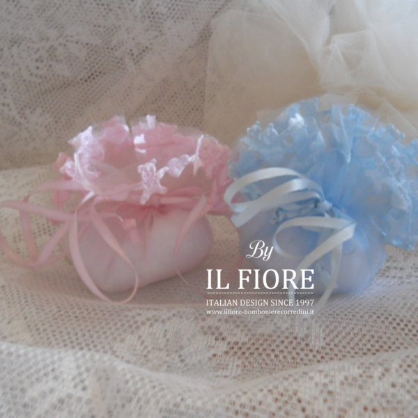 Bomboniera nascita bimba bimbo ciuffetti di colore rosa o celeste.
