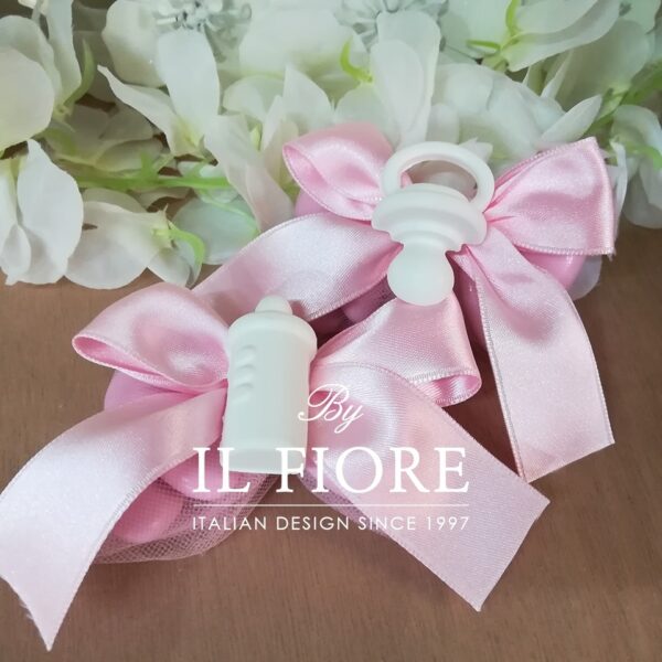 Bomboniere Nascita Ciuffetto con ciuccio, biberon e sonaglino in Gesso Profumato