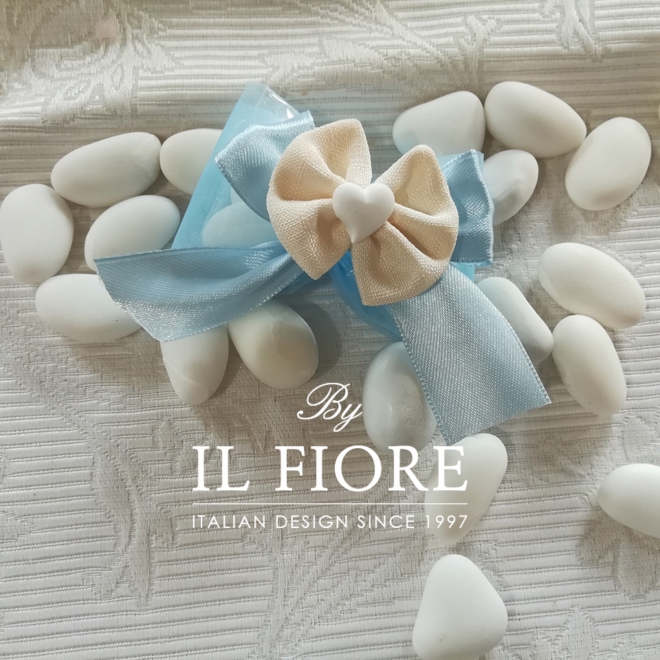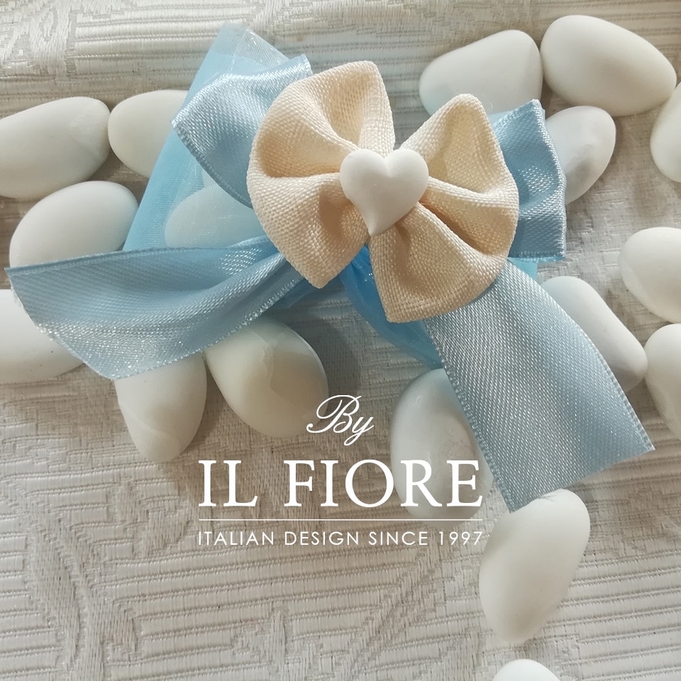Bomboniera nascita ciuffetto in tulle con cuoricino in gesso e fiocco di raso rosa o celeste.