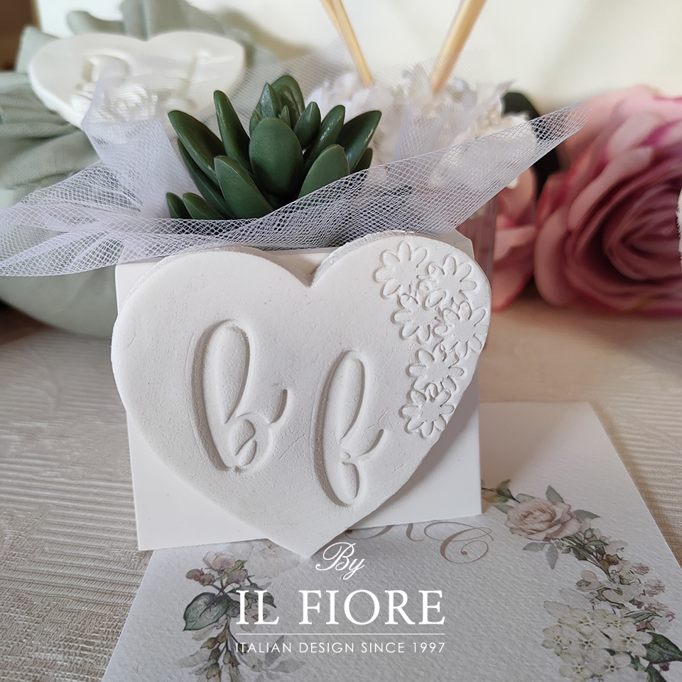 Bomboniera Matrimonio e anniversario di matrimonio. Bomboniera con piantine grasse VERE e miste con vasetto in gesso personalizzabile con cuore e iniziali.