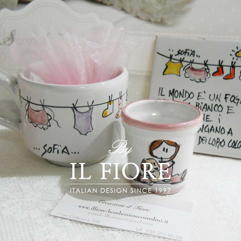 Bomboniere Utili Battesimo tazza e mattonella in ceramica
