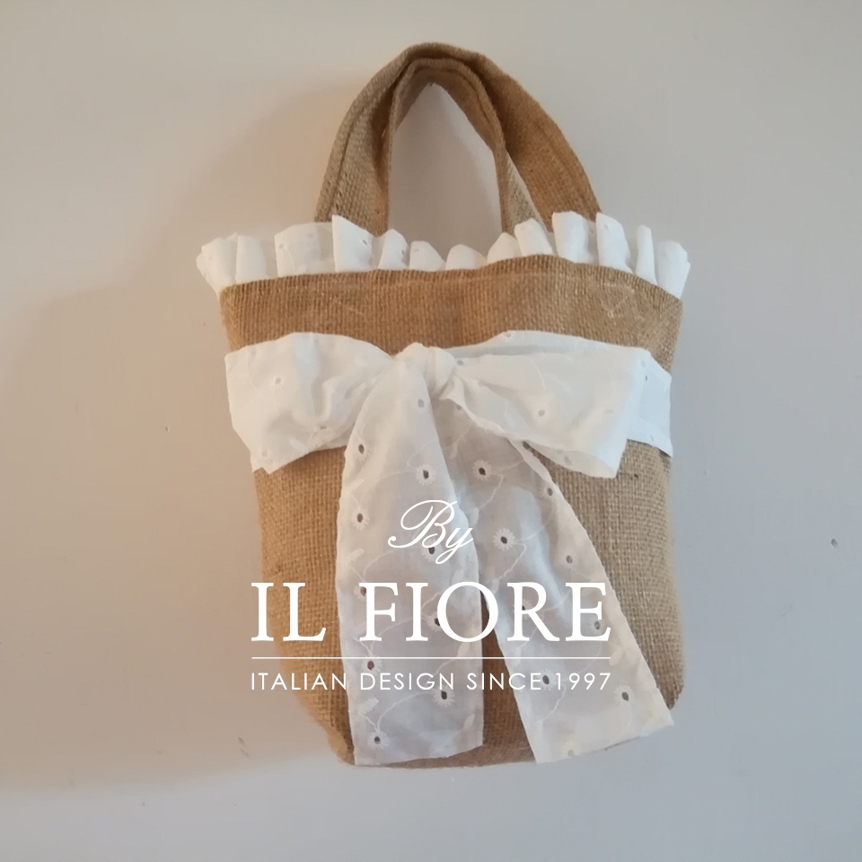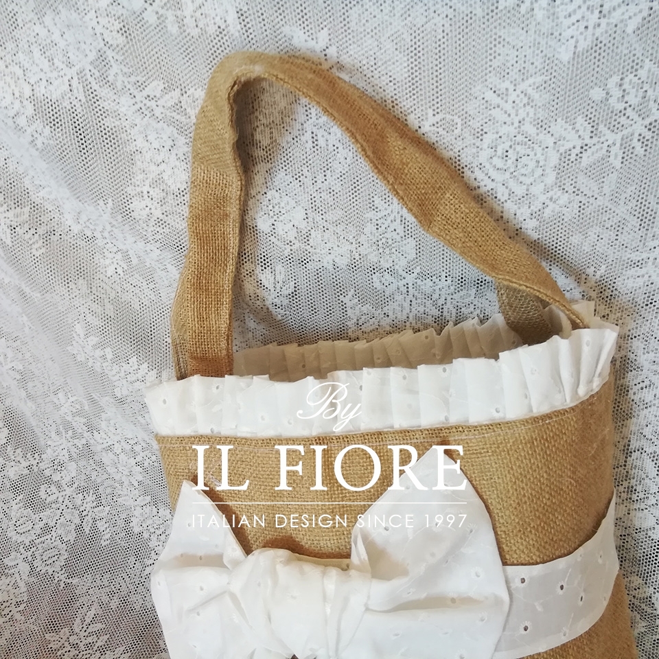 Borsa donna in juta con fiocco in Sangallo Bag donna