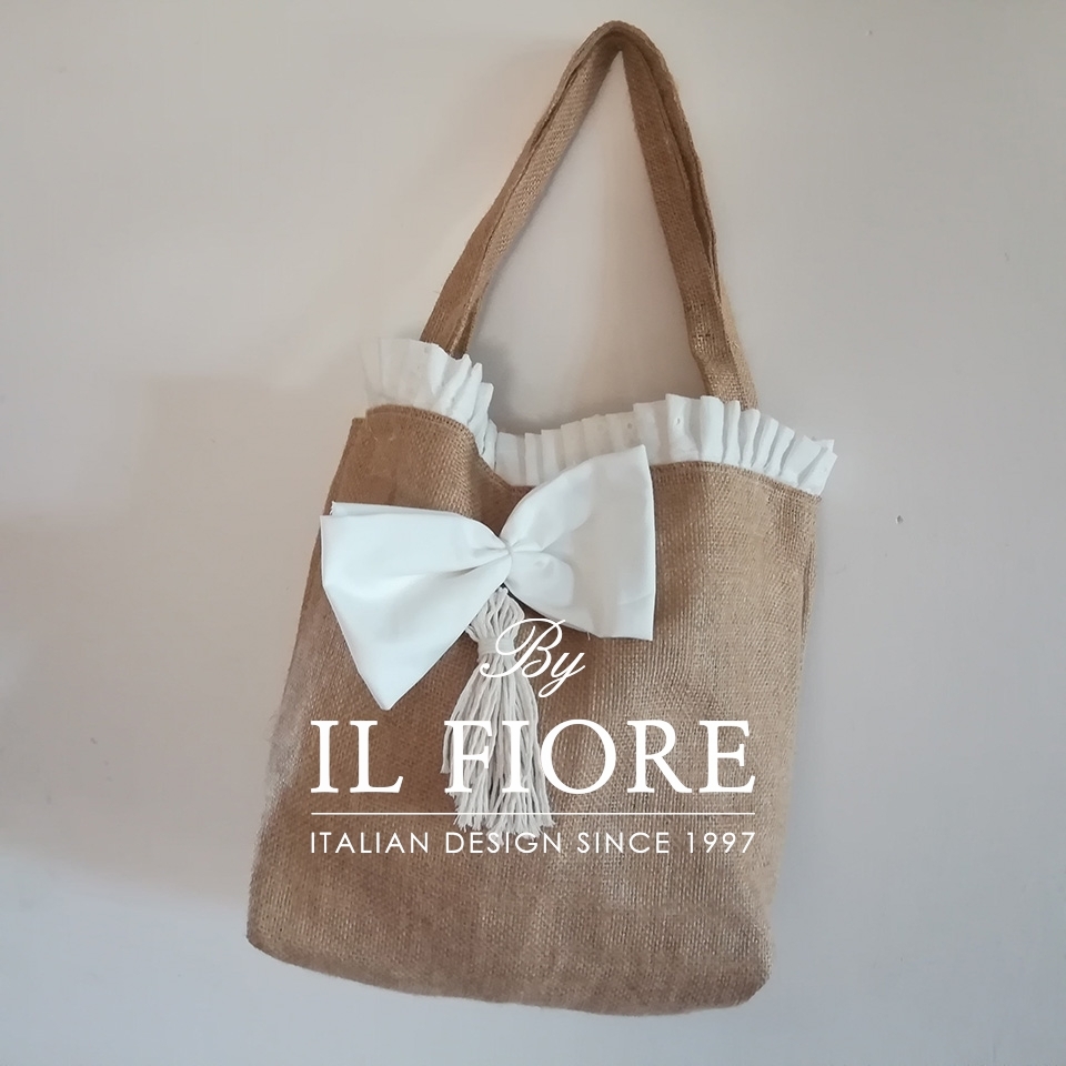 Borsa in juta con Sangallo fiocco e nappina Bag donna