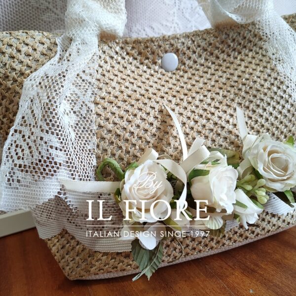 Borsa donna a mano con manici rivestiti in pizzo, decorata con raffinatissimi fiori, il tutto realizzato a mano. Un accessorio unico da indossare in città o al mare di giorno o nelle serate estive. Ideale come originalissima e personalizzata idea regalo! Nel prezzo è compresa anche la confezione regalo. Bag donna. N.B. Solo ed esclusivamente per gli articoli da regalo comprese le borse la spedizione è di € 5,00.