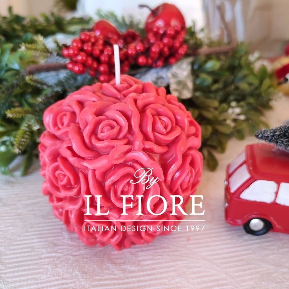 Candela grande Natale con Roselline rosse.