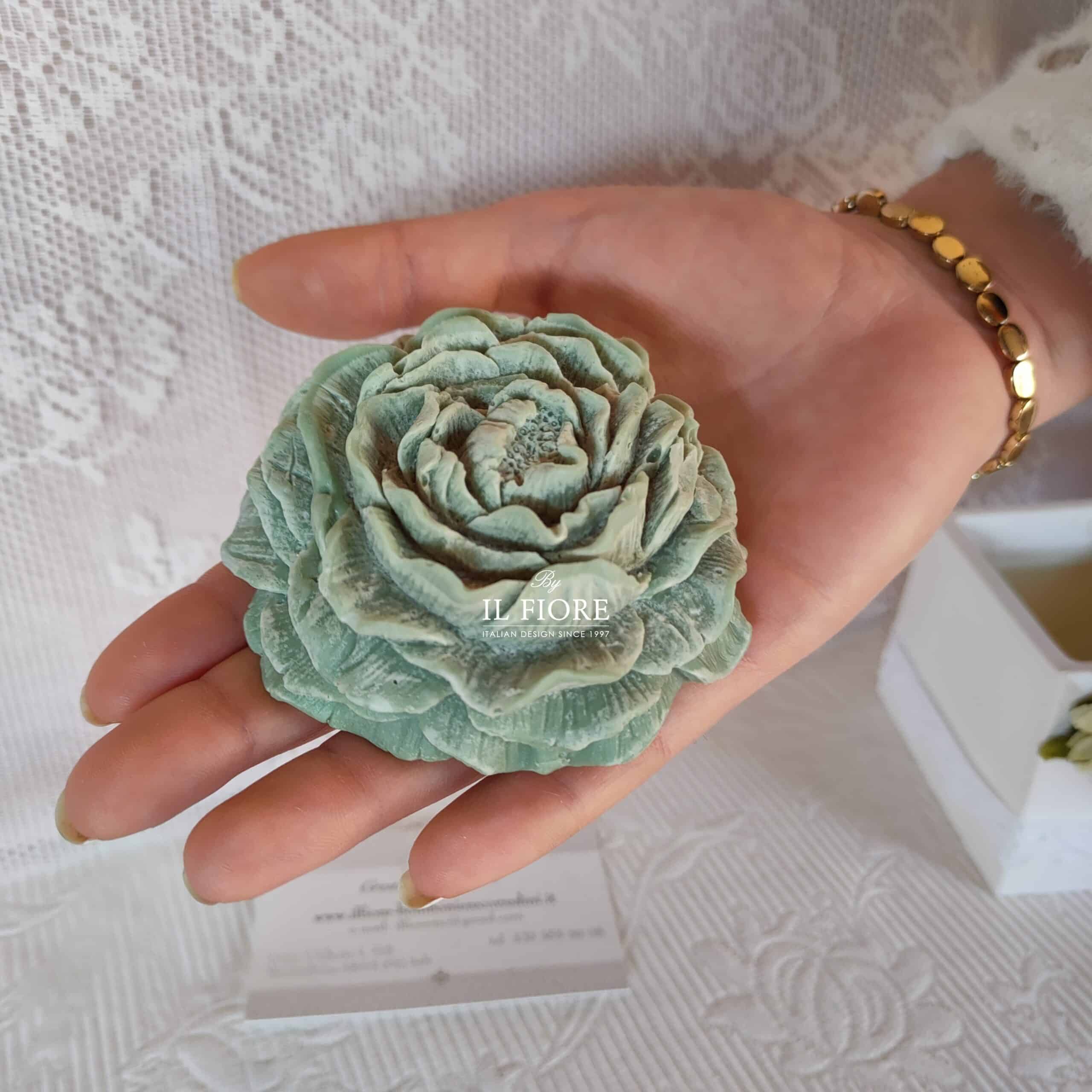 Bomboniera candela decorativa peonia per Comunione, Cresima, matrimonio e anniversario matrimonio.