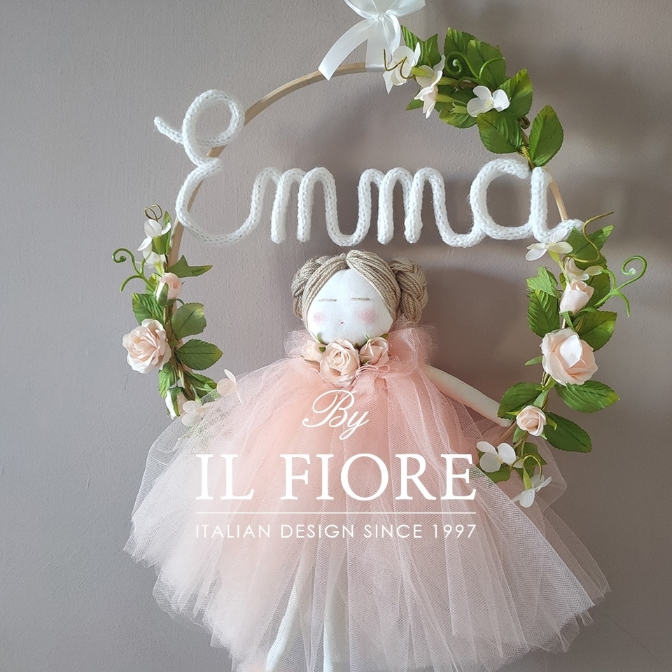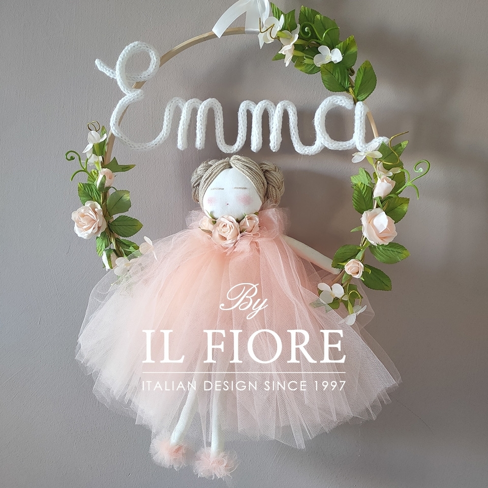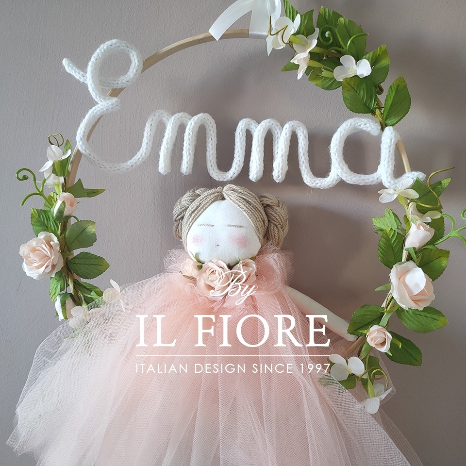 Cerchio con bambolina e vestito in tulle personalizzabile con nome allestimeti