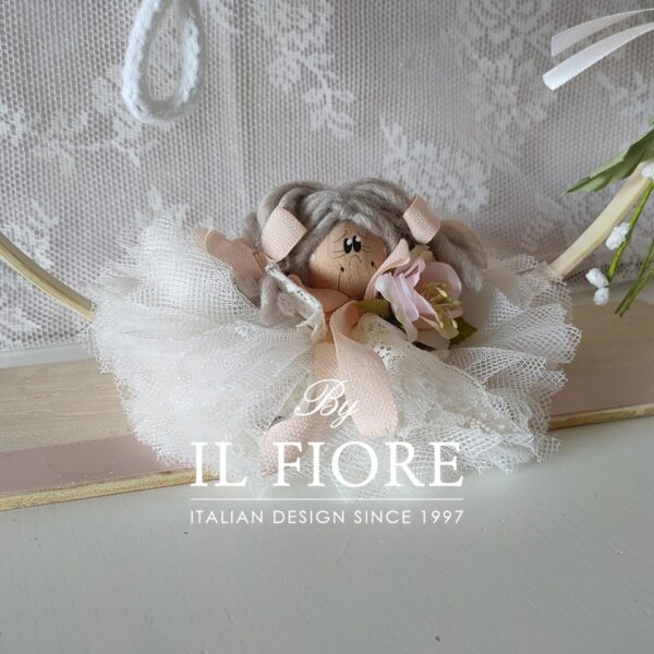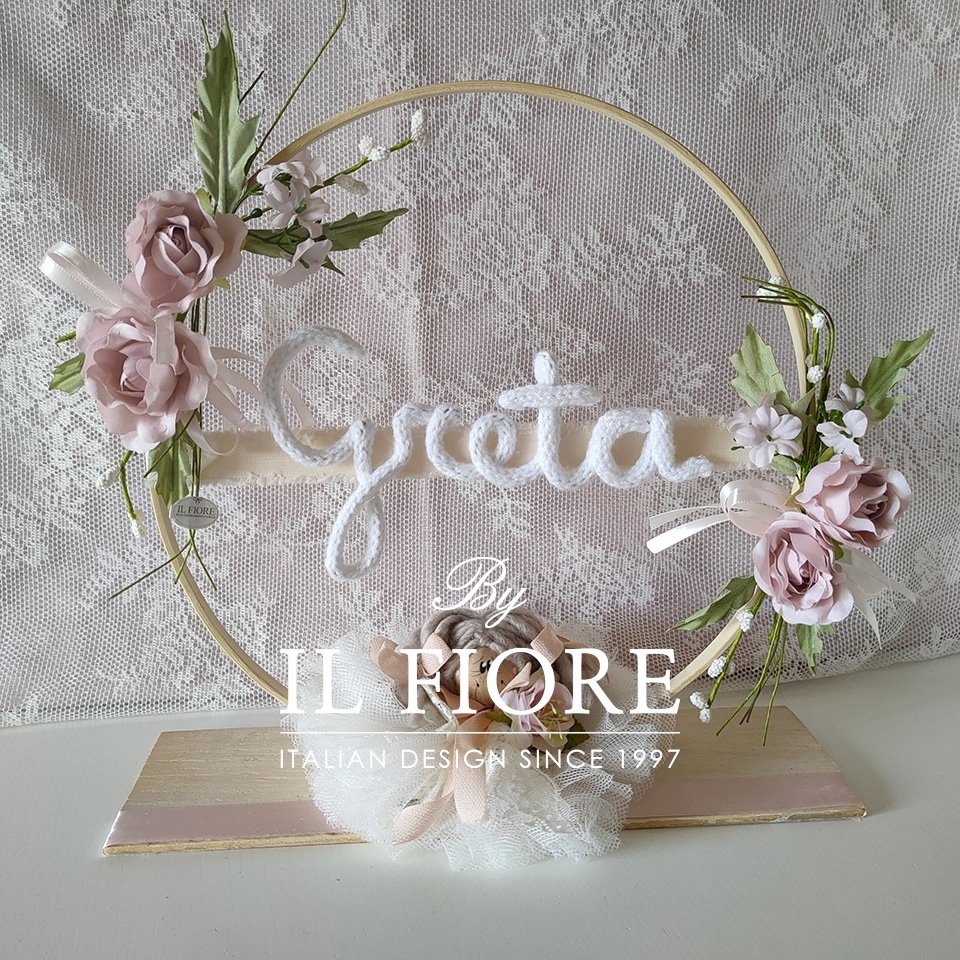Cerchio centrotavola o decorazione tavolo torta personalizzabile con nome, ideale per allestimenti e decorazione cameretta, decorata con bambola e fiori.