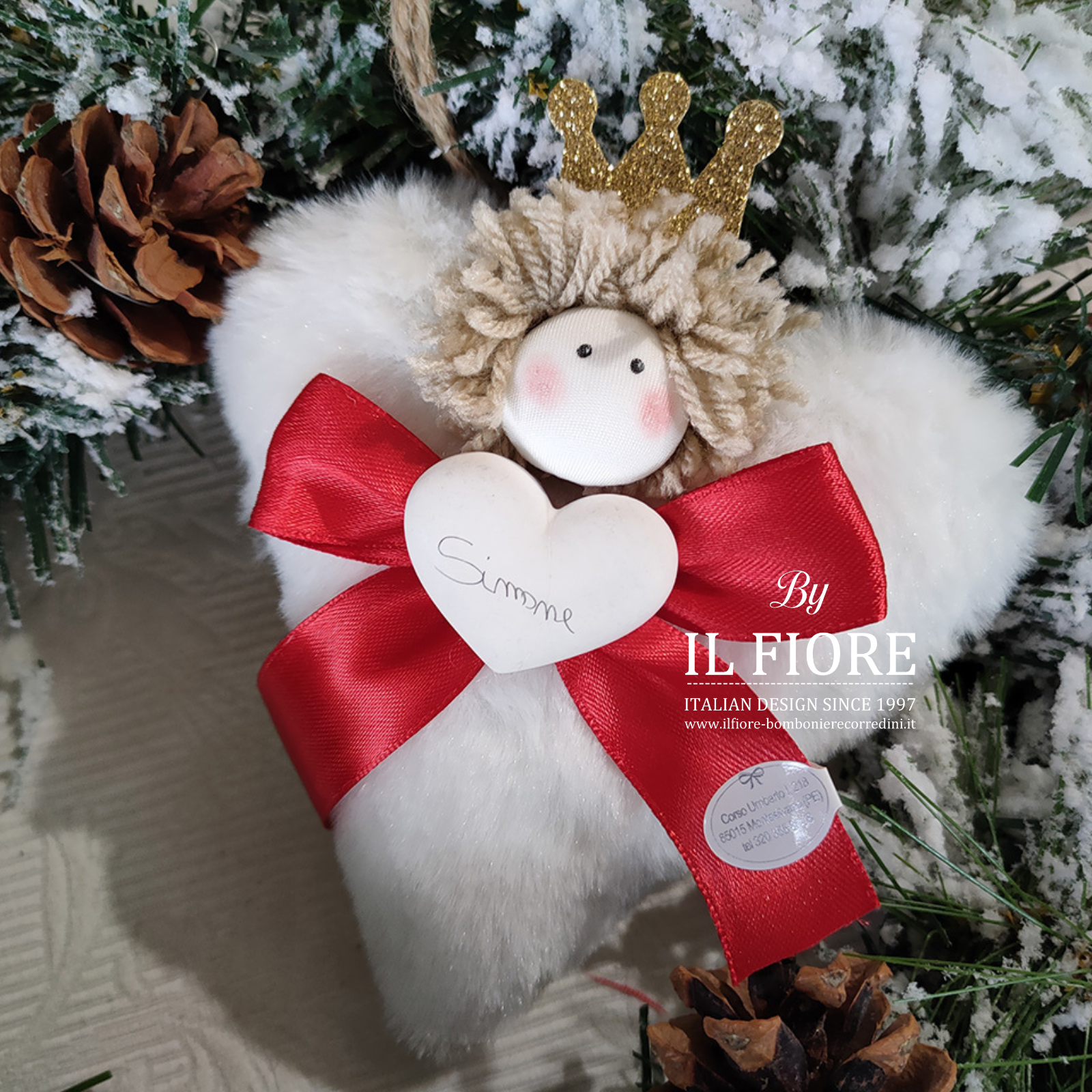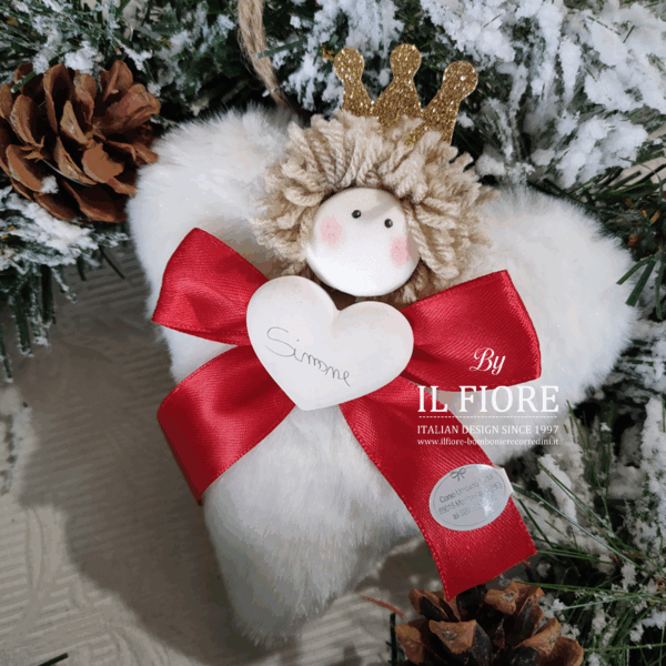 Decorazione natalizia per albero di Natale cuore personalizzabile con nome per bimbo. Originale addobbo natalizio e articolo da regalo.