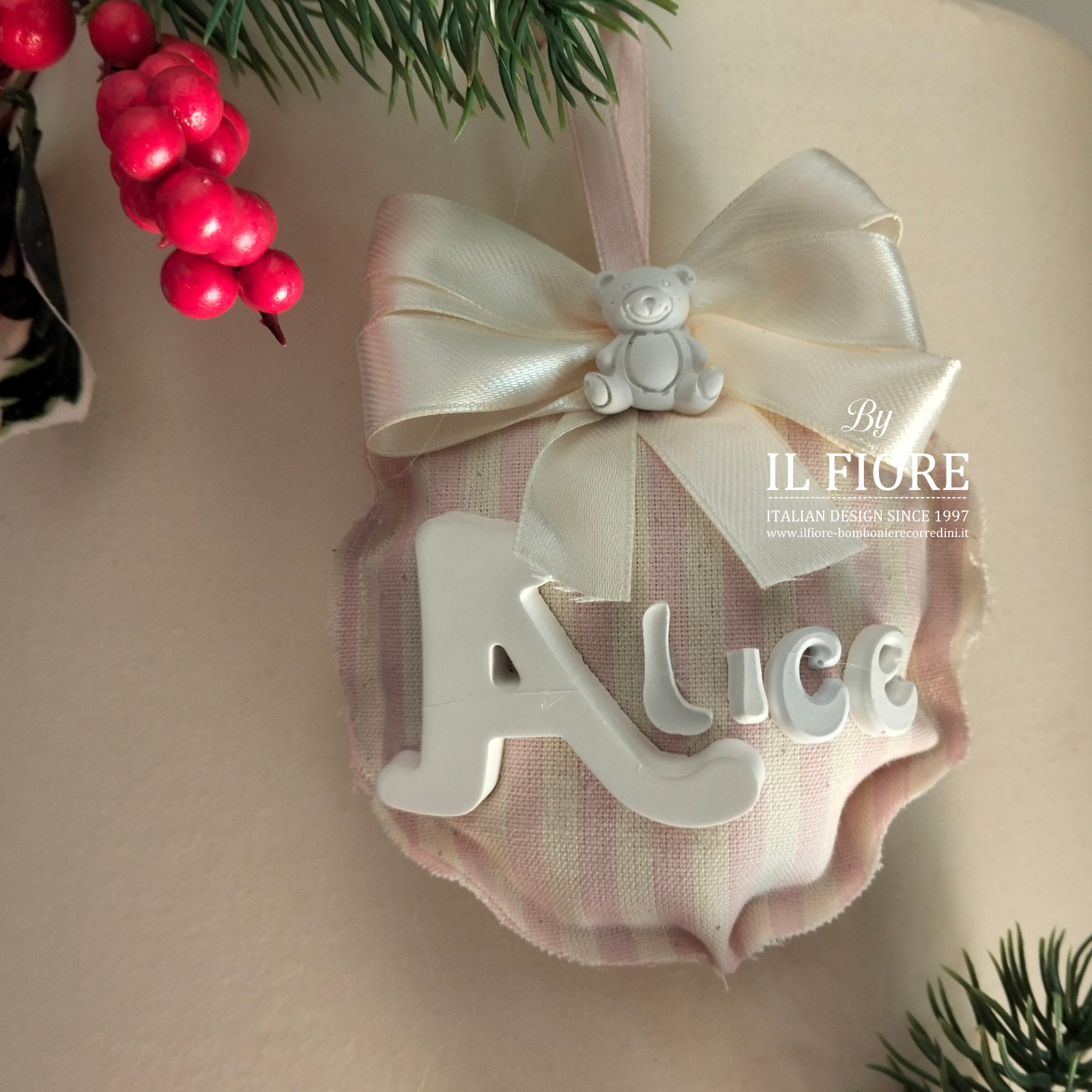 Decorazione natalizia per albero di Natale pallina personalizzabile con nome per bimbo e bimba. Originale addobbo natalizio e articolo da regalo. Compresa nel prezzo la confezione regalo.