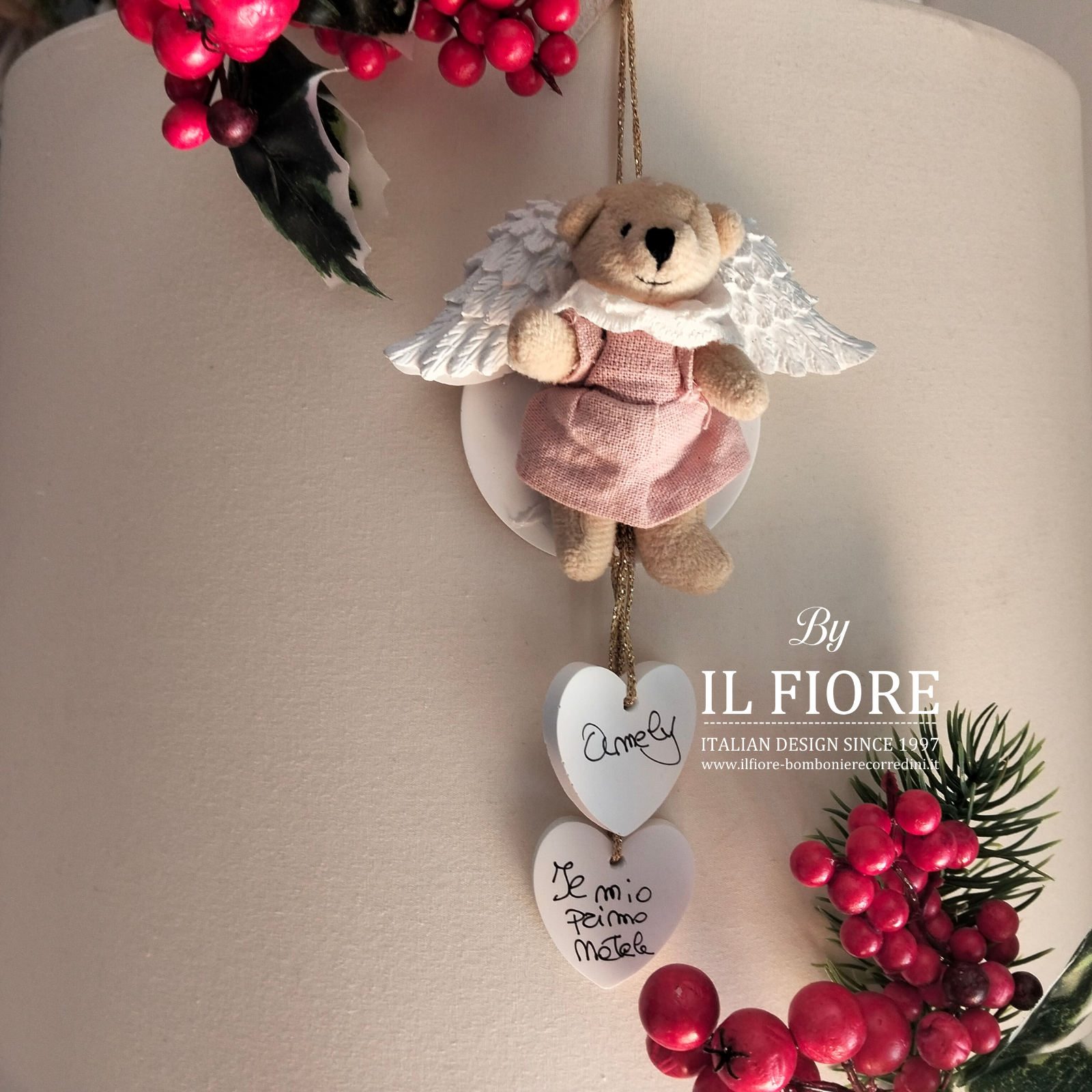 Decorazione natalizia per albero di Natale personalizzabile con nome e scritta IL MIO PRIMO NATALE. Originale addobbo natalizio e articolo da regalo.
