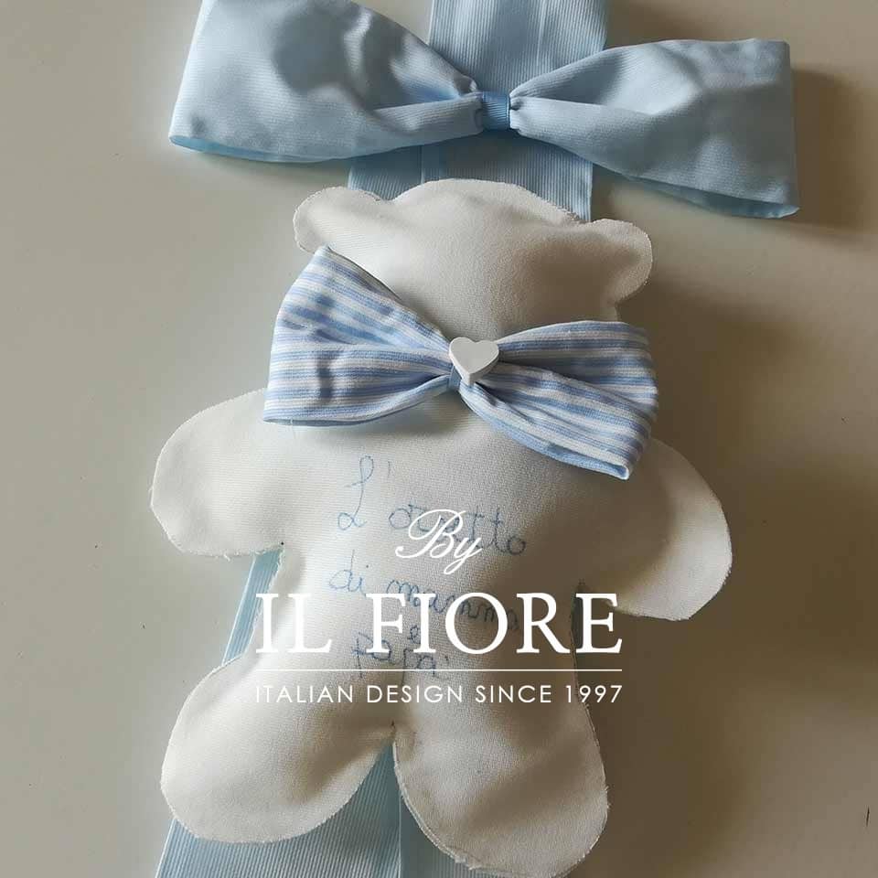 Fiocco nascita bimbo e bimba, in cotone e fiocchi in piquet celeste e al centro del fiocco c’è l’orso  personalizzabile con dedica come foto o nome del vostro principino o principessa. I nostri fiocchi raffinati, nuovi e unici, vi daranno la possibilità di annunciare in modo elegante l’arrivo del vostro bimbo o della vostra bimba. E’ disponibile in rosa e celeste tutto realizzato a mano made in Italy.