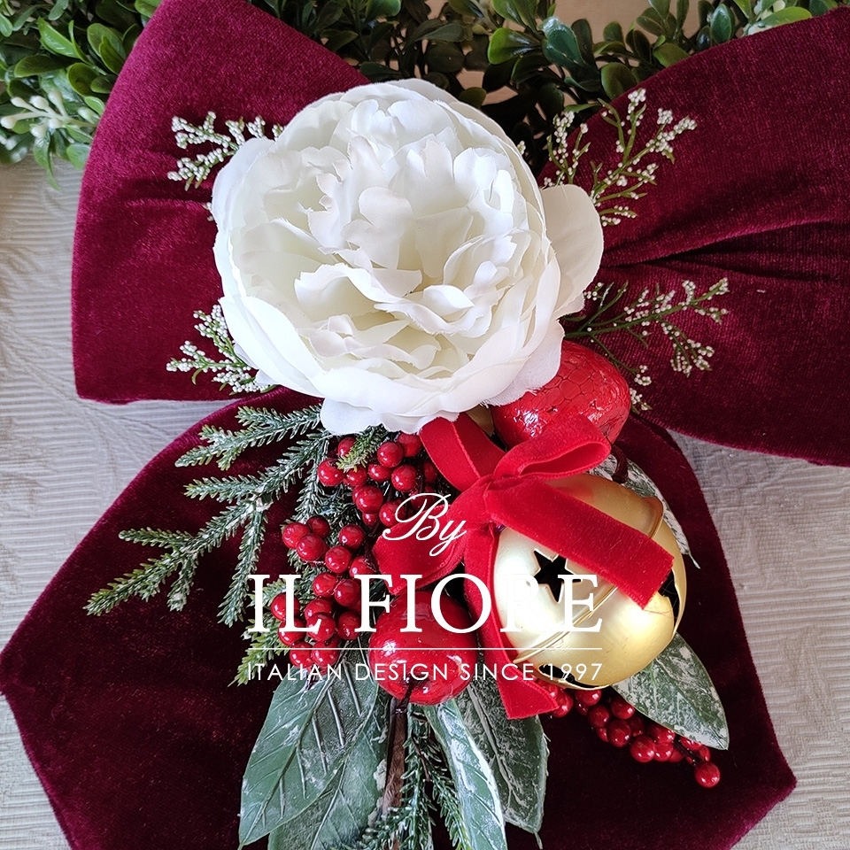 Fiocco natalizio per Albero di Natale con campanella e fiori