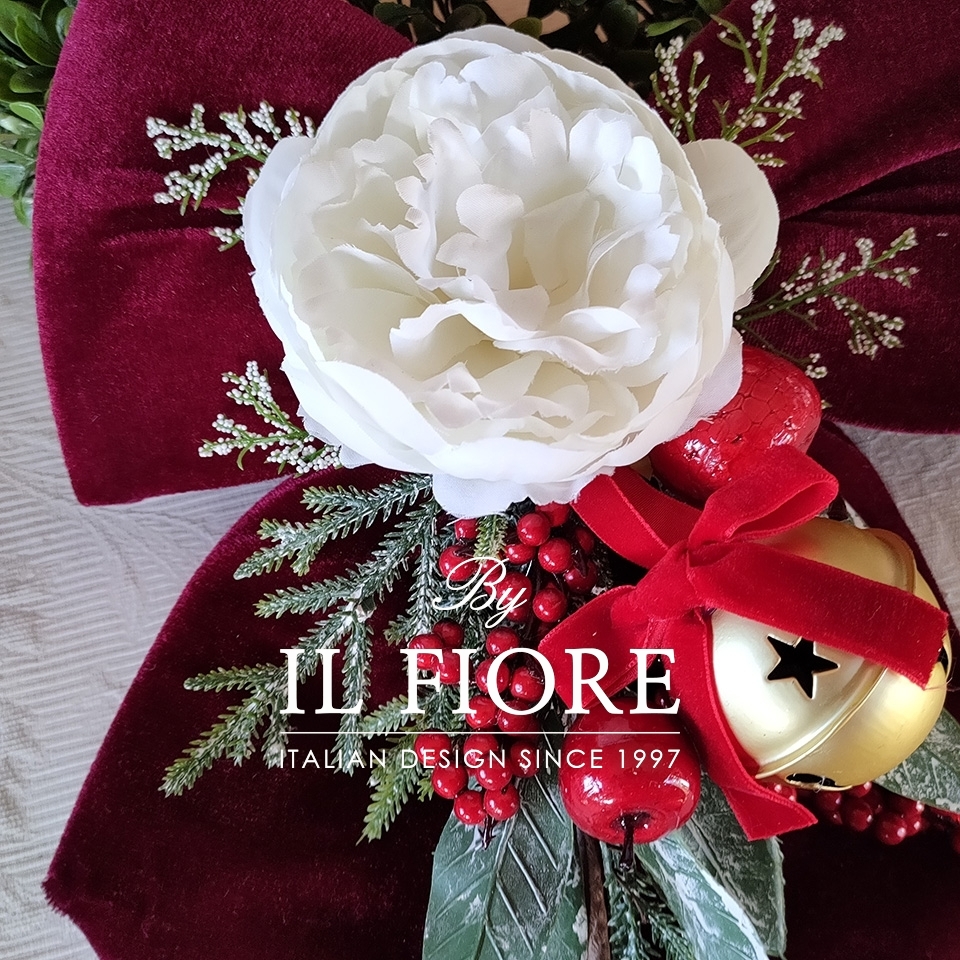Fiocco natalizio per Albero di Natale con campanella e fiori