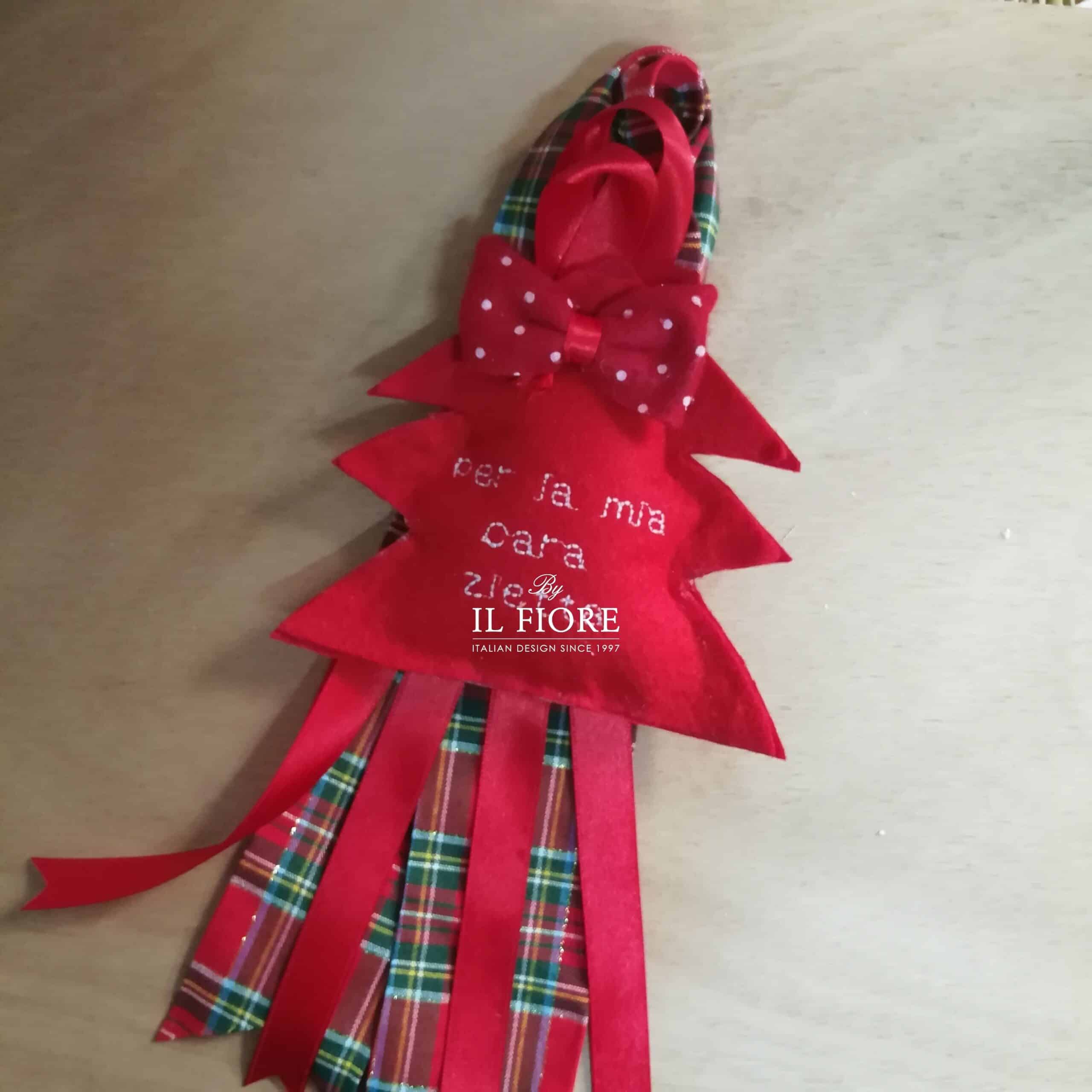 Fuoriporta  alberello di Natale in pannolenci e ricamato a mani e fiocco a papion.