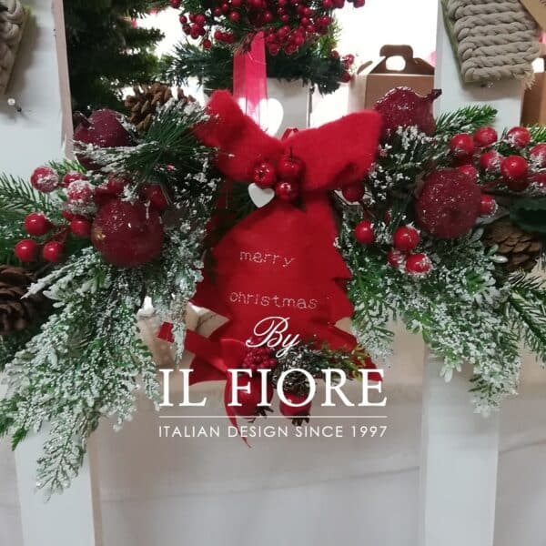 Fuoriporta Natalizio in pino con albero di Natale in pannolenci rosso e bacche