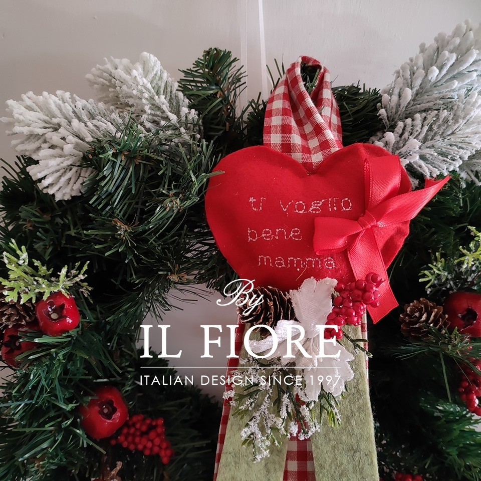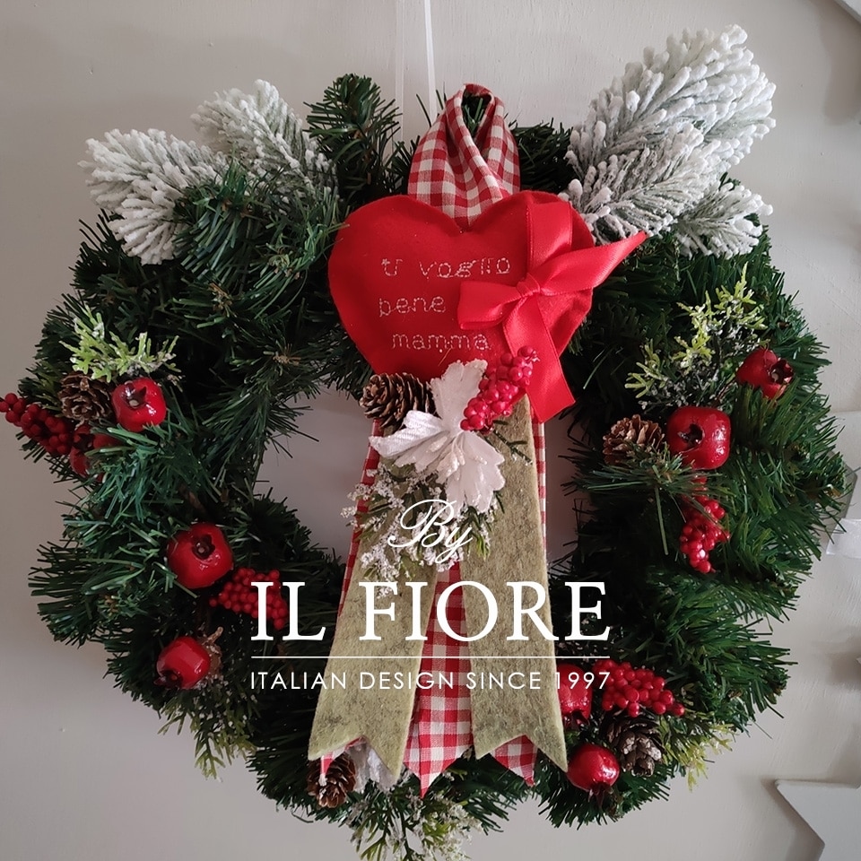 Ghirlanda natalizia in pino, con cuore personalizzabile e bacche. Creazione fatta a mano.