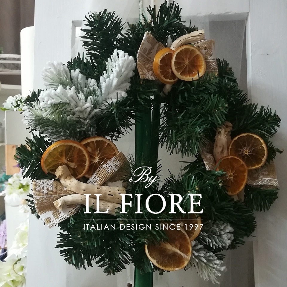 Ghirlanda natalizia in pino, con fiocchi, frutta secca e canne.  Creazione fatta a mano.