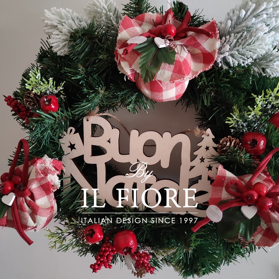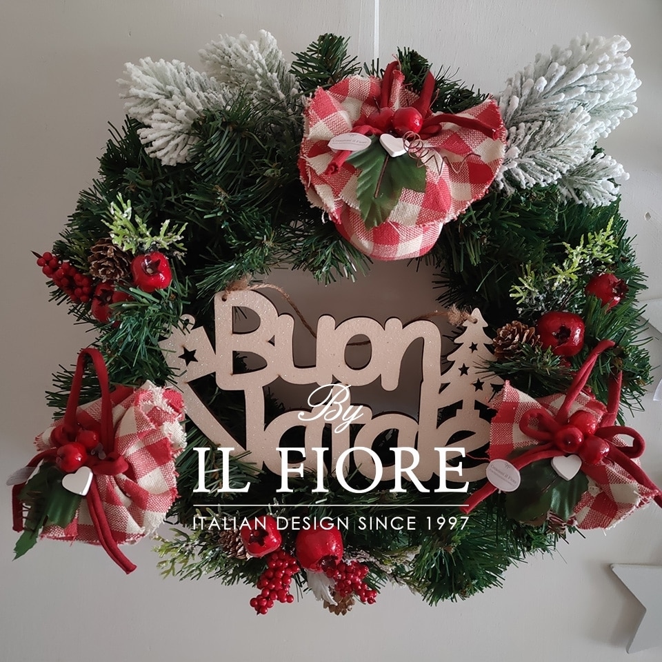 Arricchita nella parte centrale dalla scritta Buon Natale in legno.